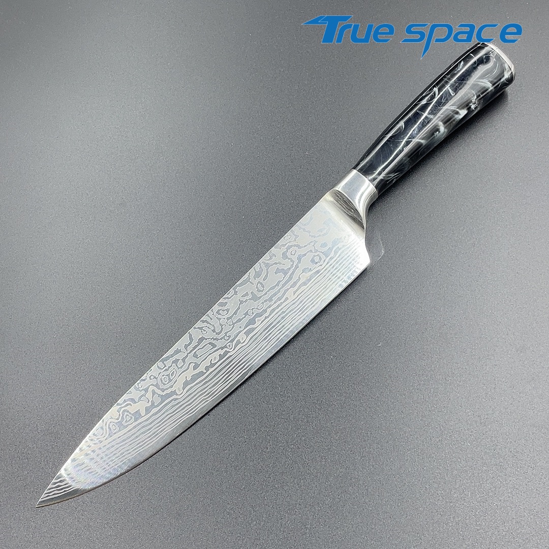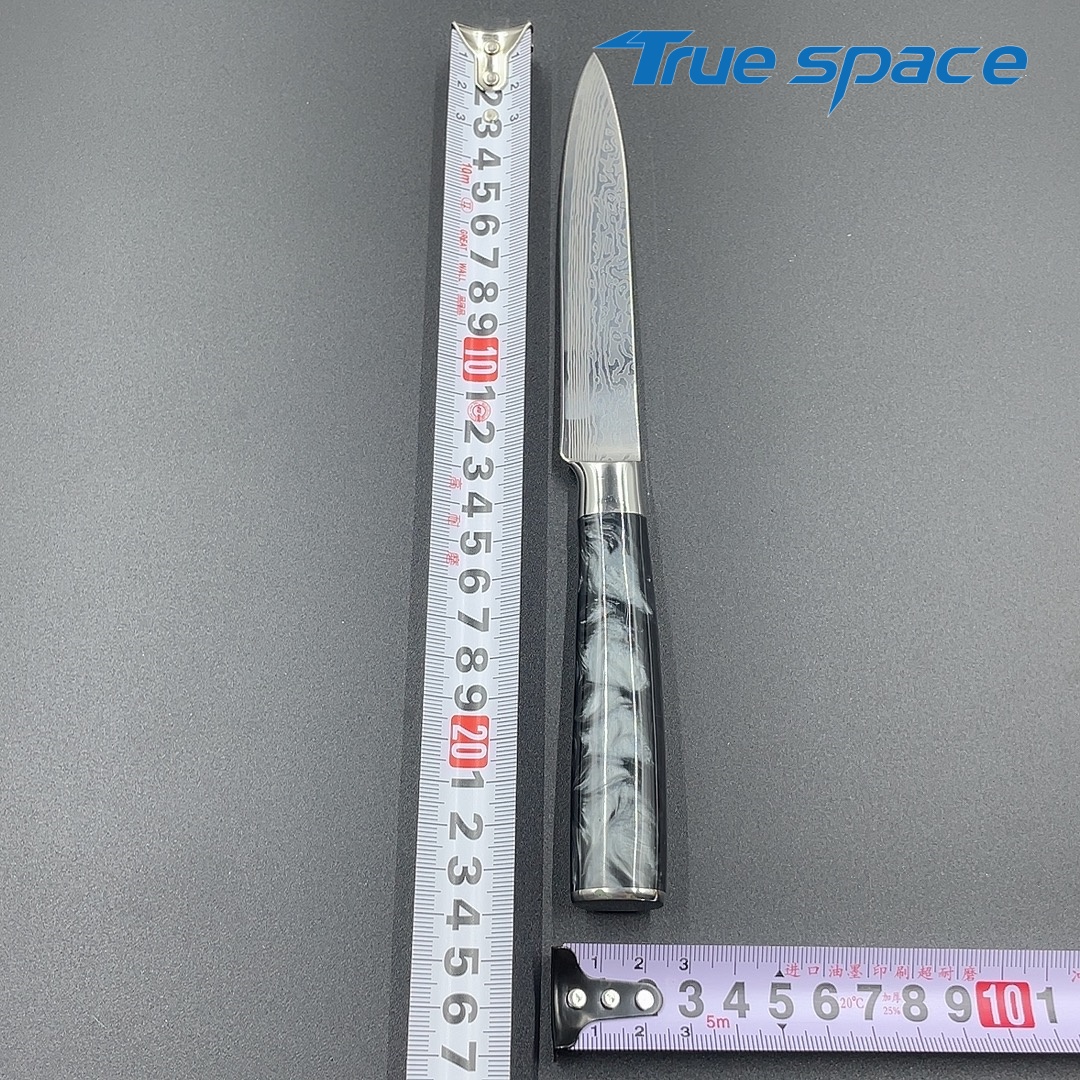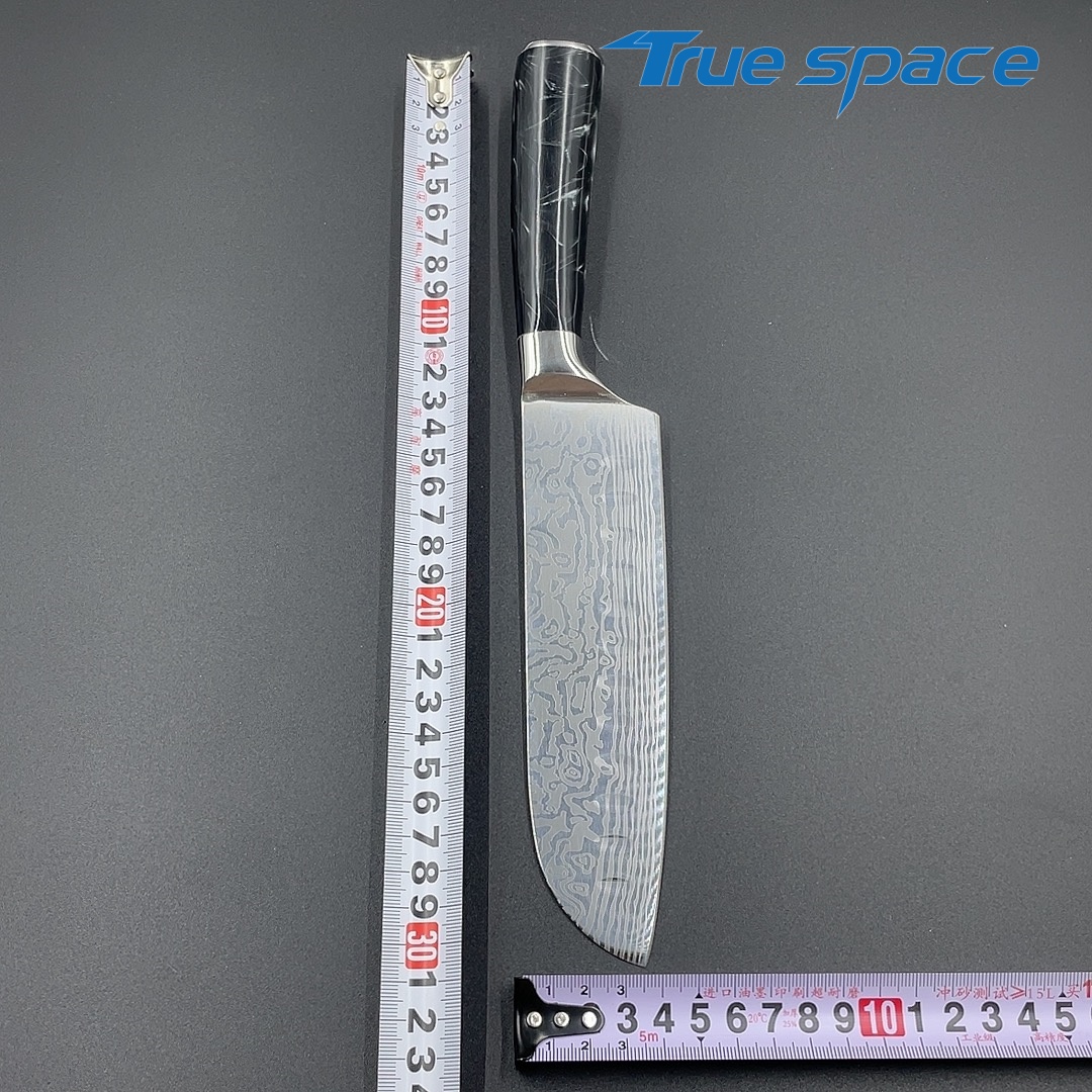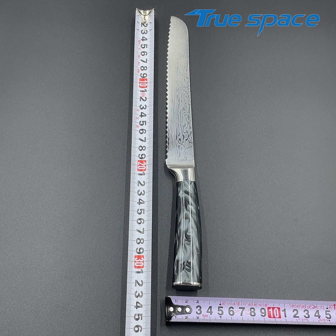 MaterialBlade Material: Damascus SteelHandle Material: ResinOptions9-piece Damascus knife set with a knife block(带刀架的大马士革套刀9件)Measurement/Weight3209.8g