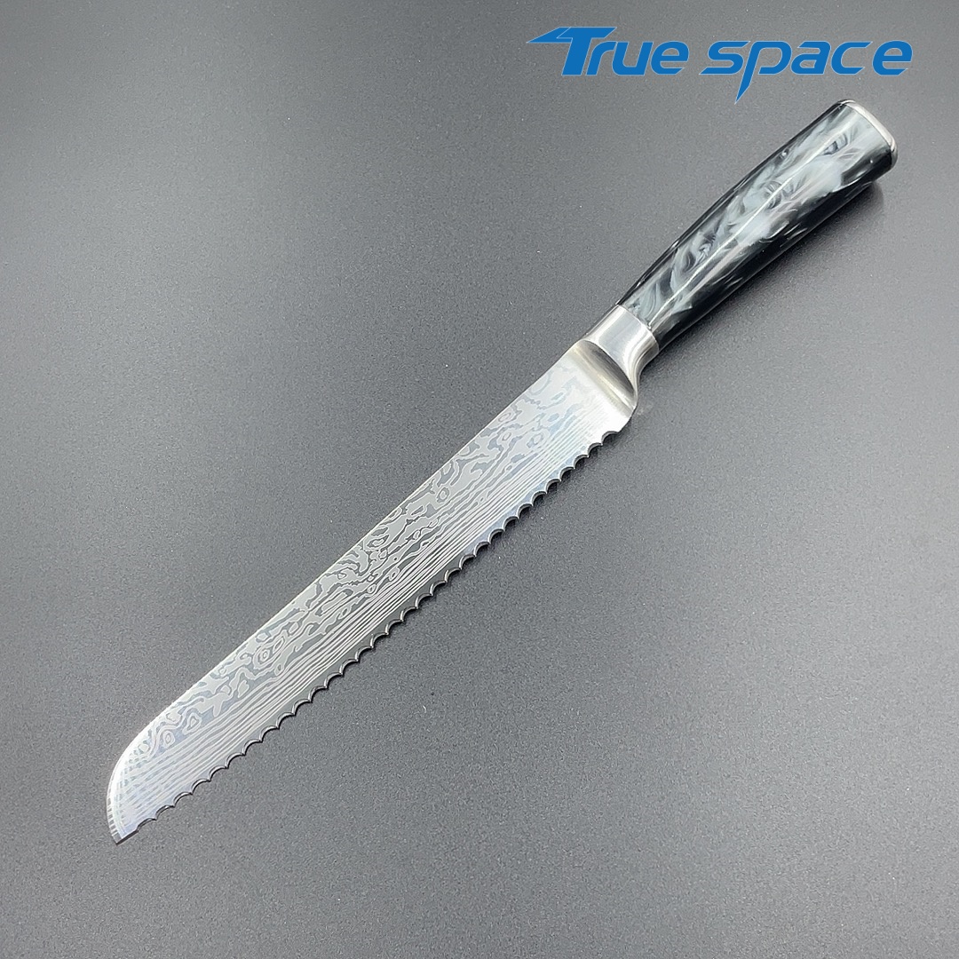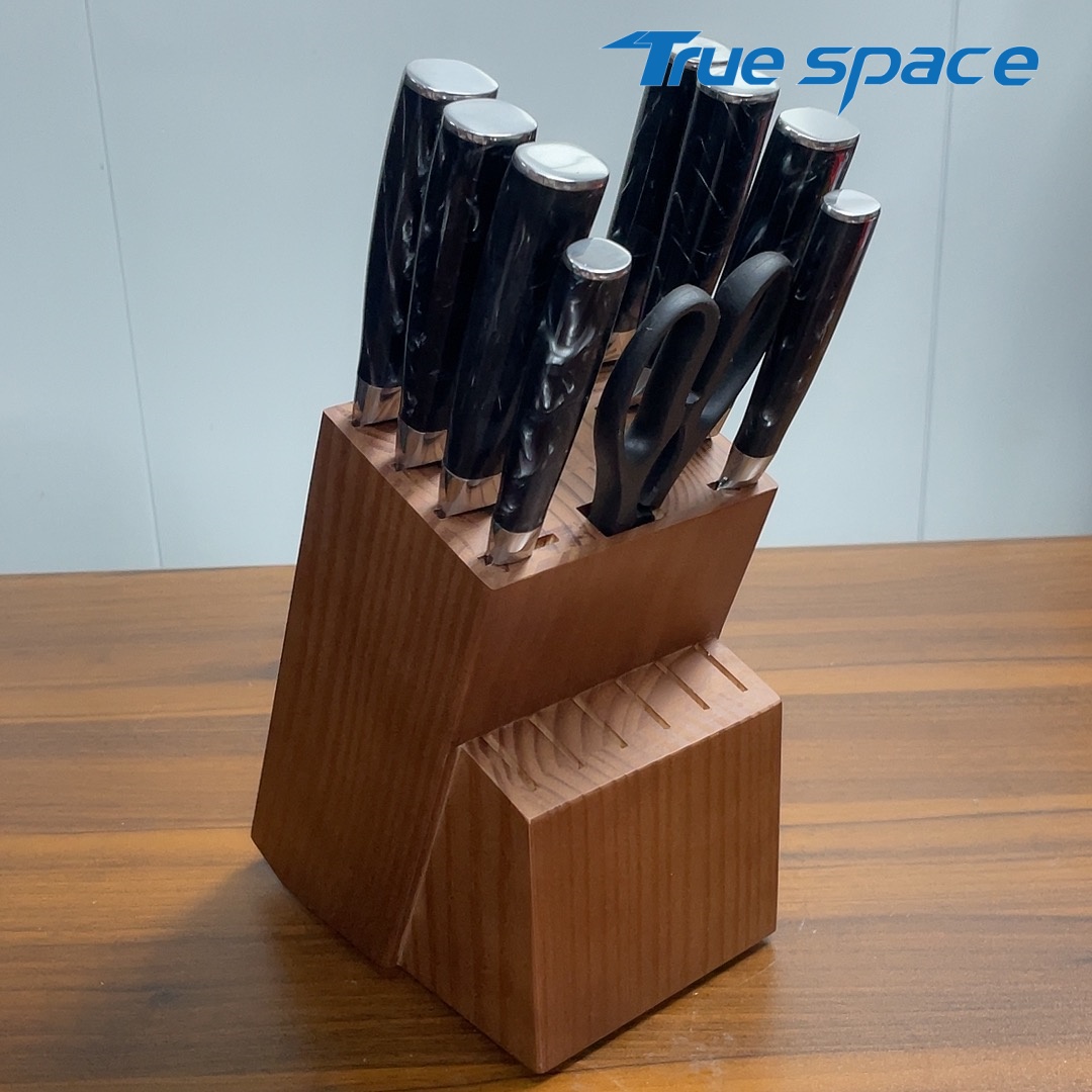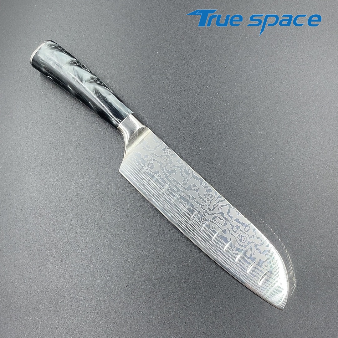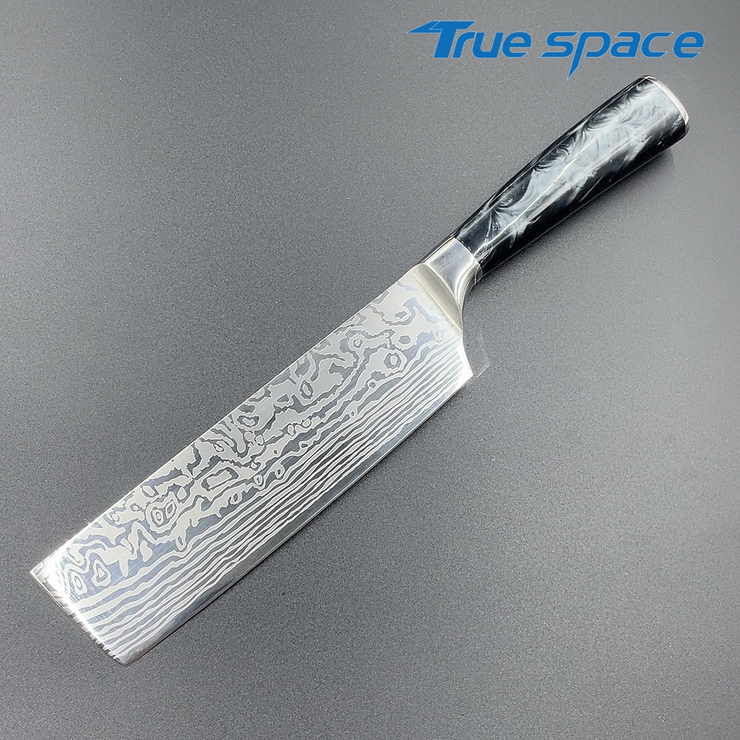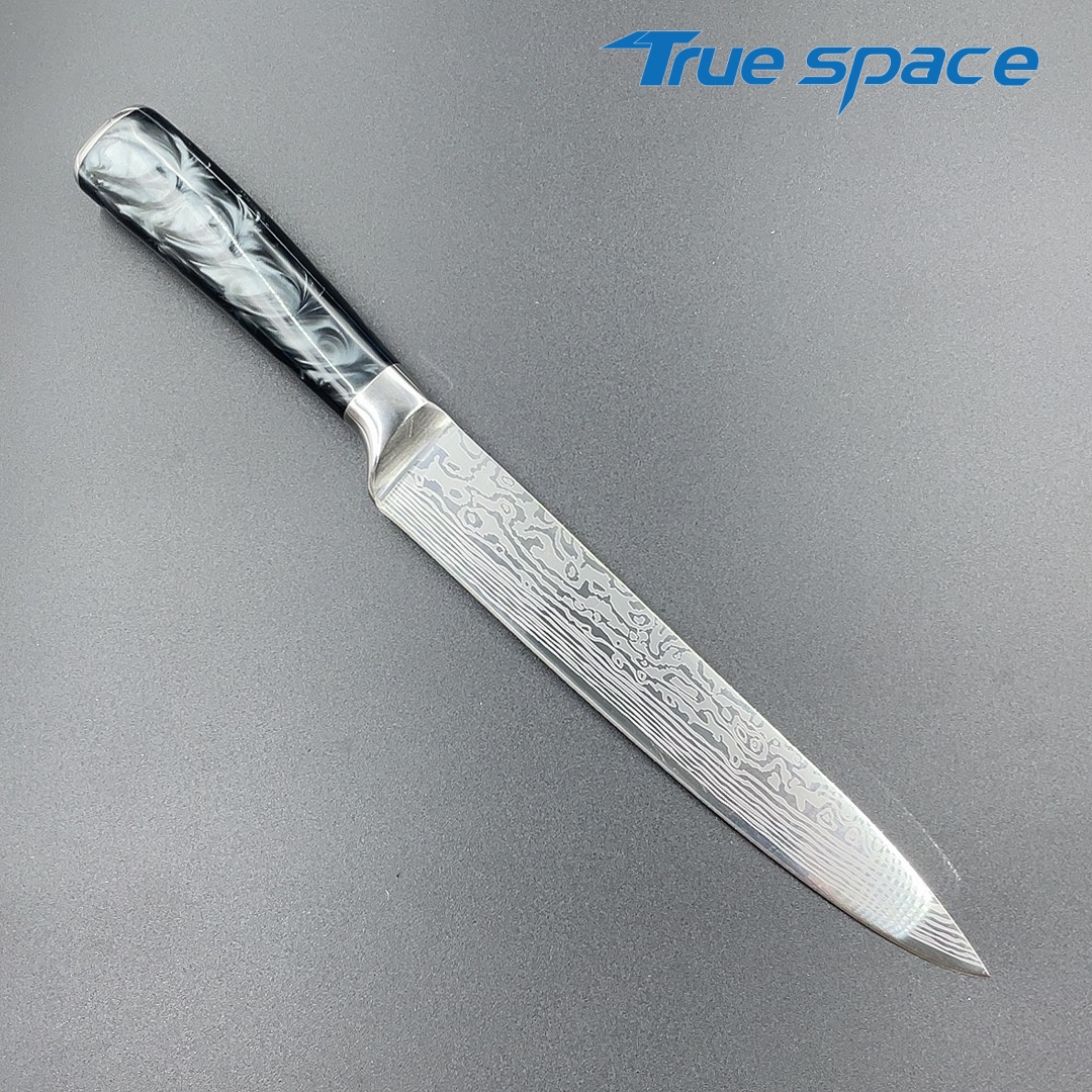 MaterialBlade Material: Damascus SteelHandle Material: ResinOptions9-piece Damascus knife set with a knife block(带刀架的大马士革套刀9件)Measurement/Weight3209.8g