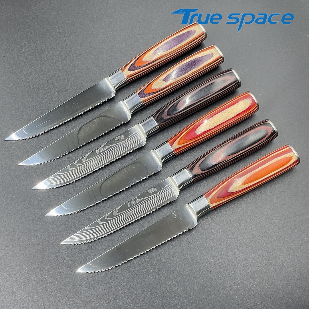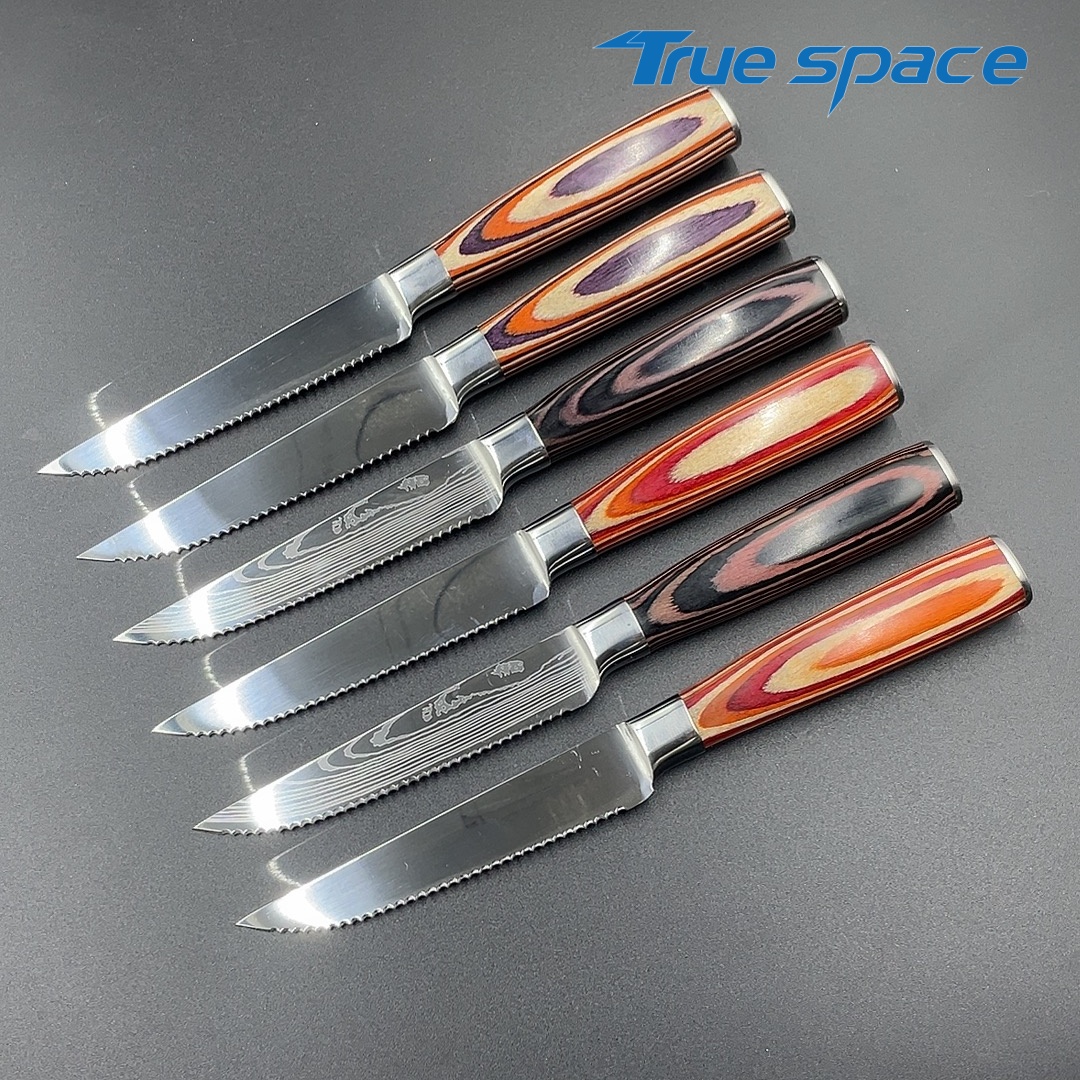 Be the first to review “Color Wooden Handle Kitchen Household Tableware Steak Knife Set, High-end Damascus Steel Full Serrated Blade Steak Knife” Cancel reply