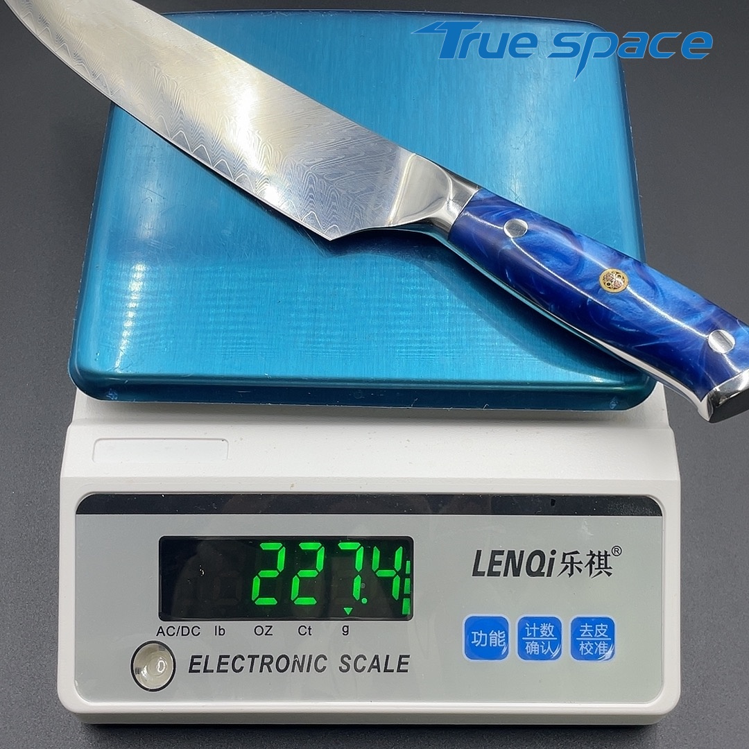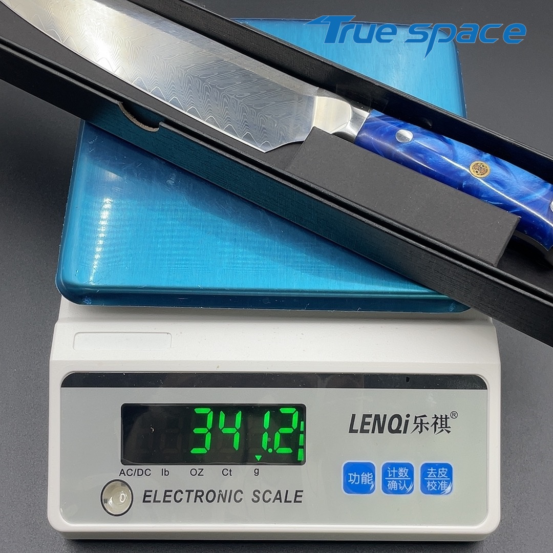 MaterialDamascus SteelOptions1、Chef knife2、Chef knife with gift boxMeasurement33.6*4.2cmWeightKnife only: 227.4gWith gift box: 341.2g