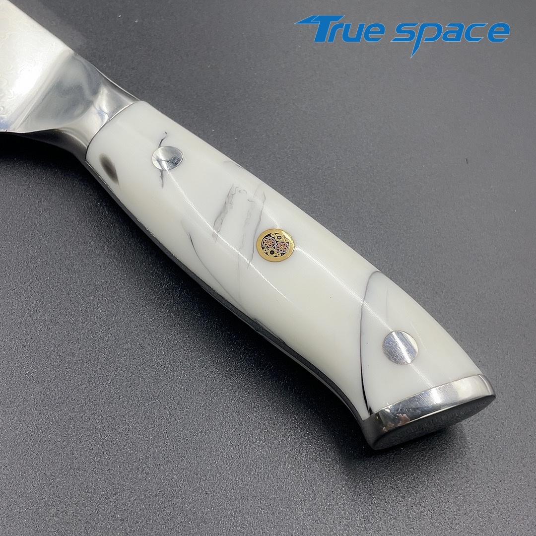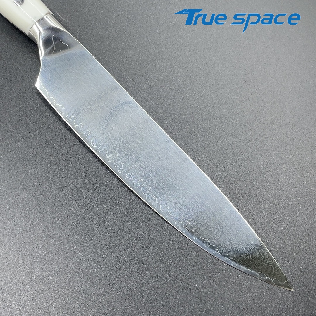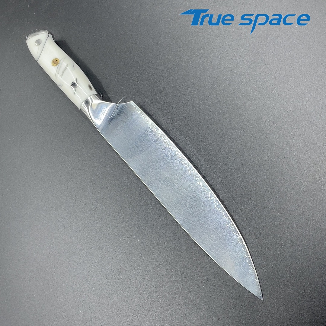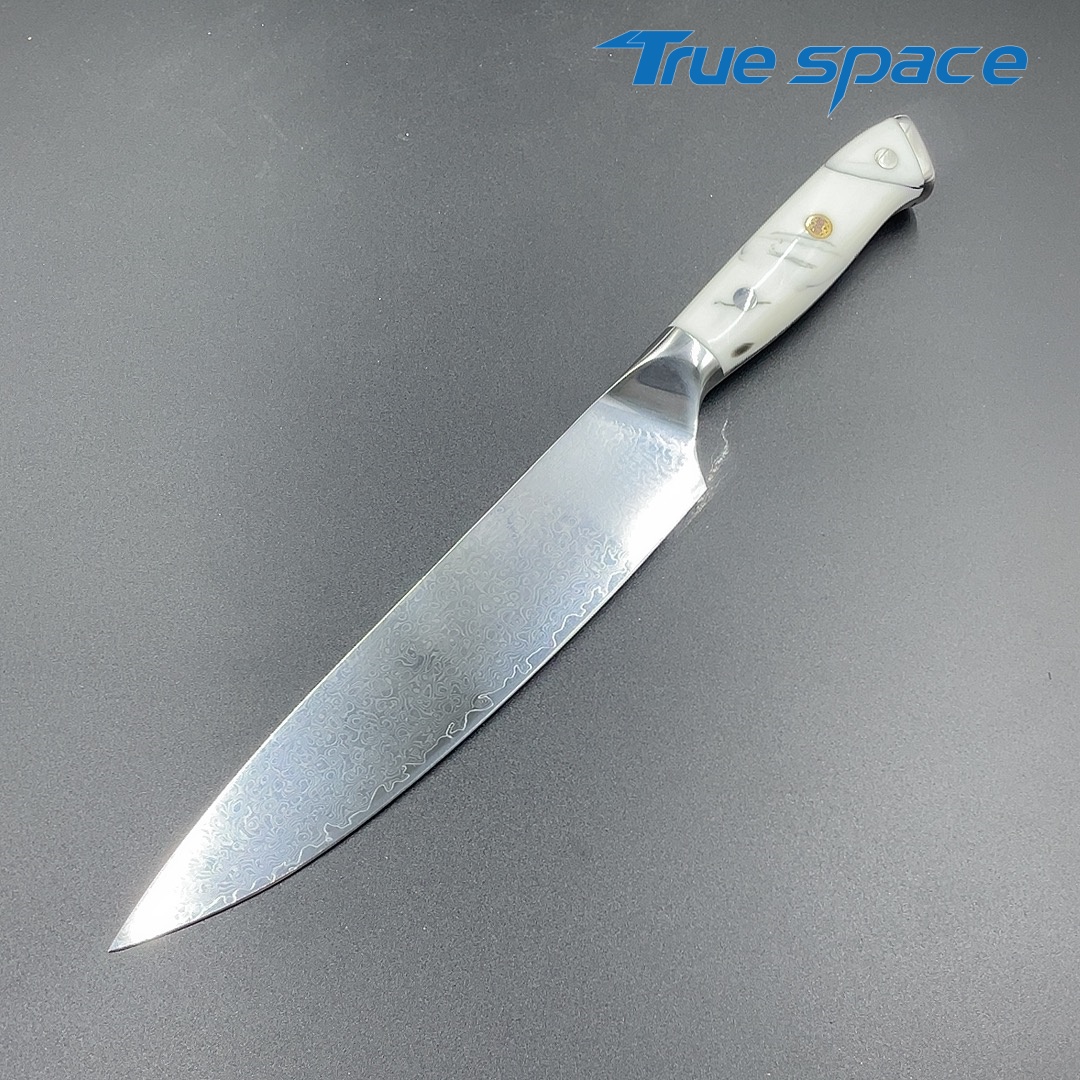 MaterialDamascus SteelOptions1、Chef knife2、Chef knife with gift boxMeasurement33.6*4.2cmWeightKnife only: 226gWith gift box: 346.6g