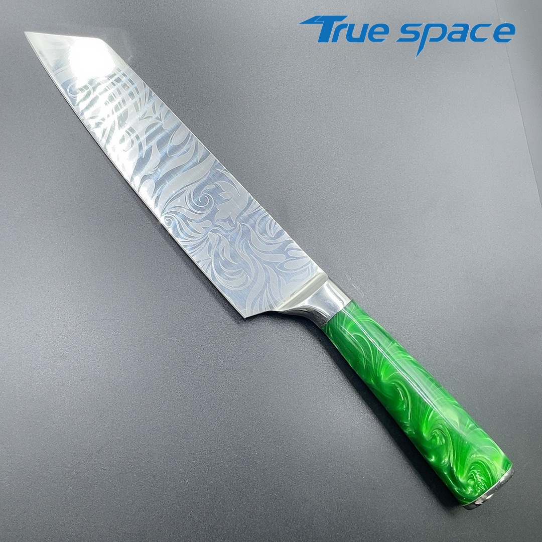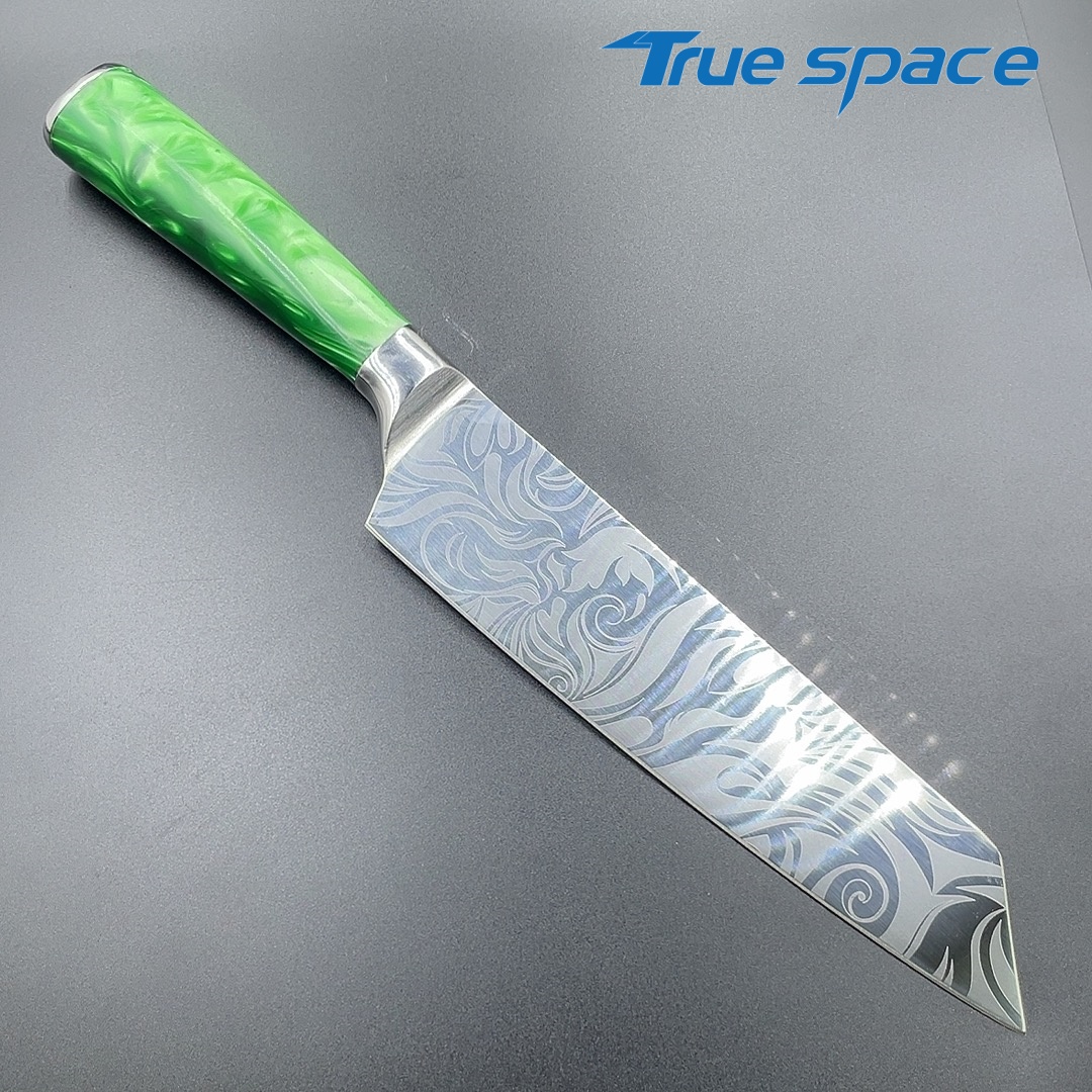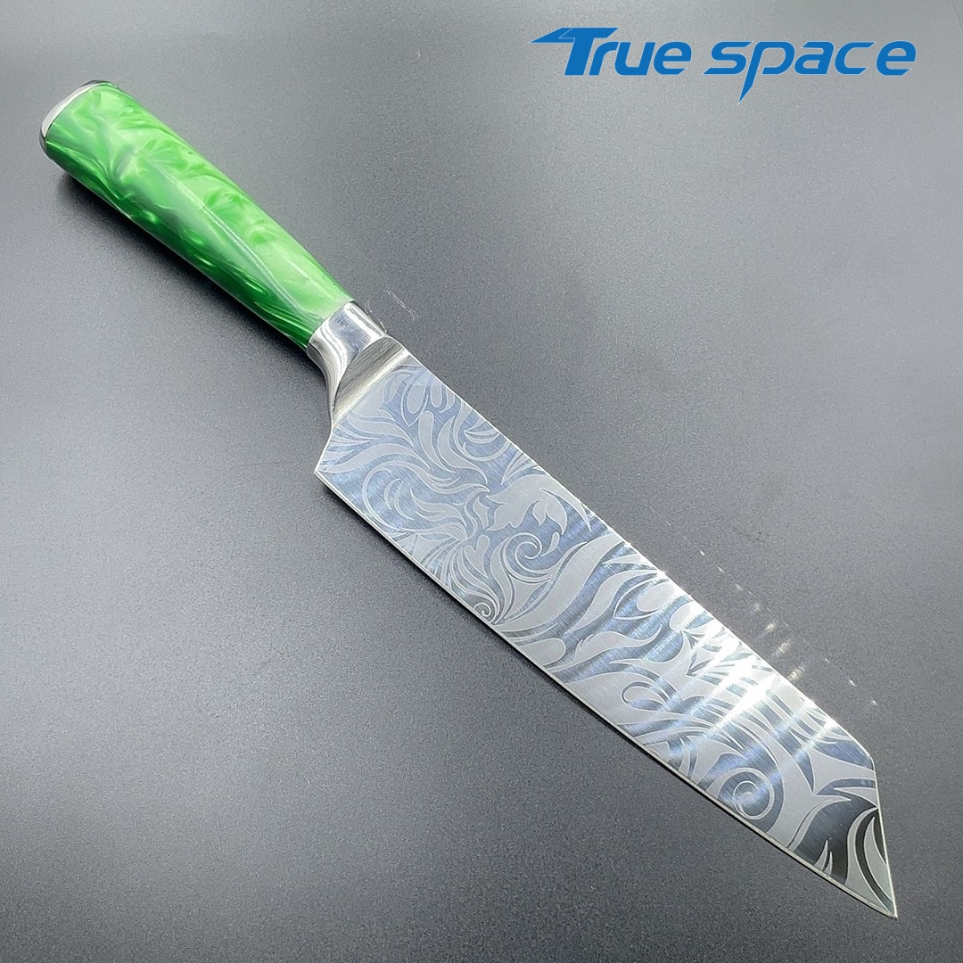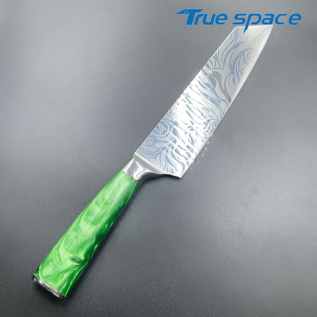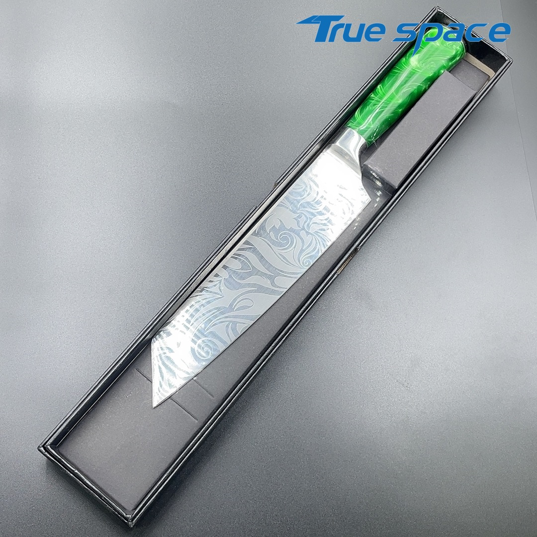 MaterialDamascus SteelOptions1、Kiritsuke knife2、Kiritsuke knife with gift boxMeasurement32.5*4.4cmWeightKnife only: 181gWith gift box: 301.5g