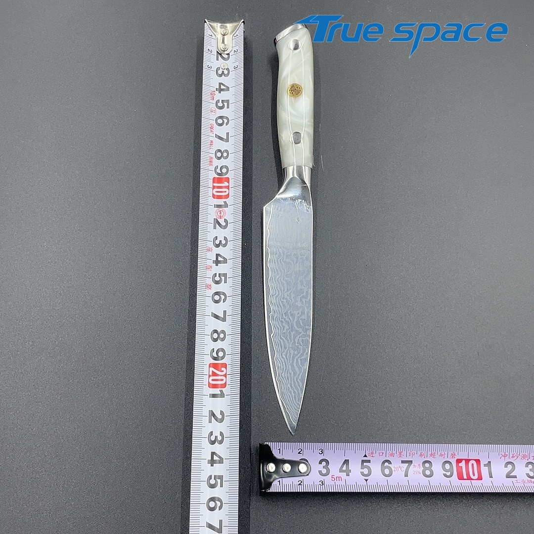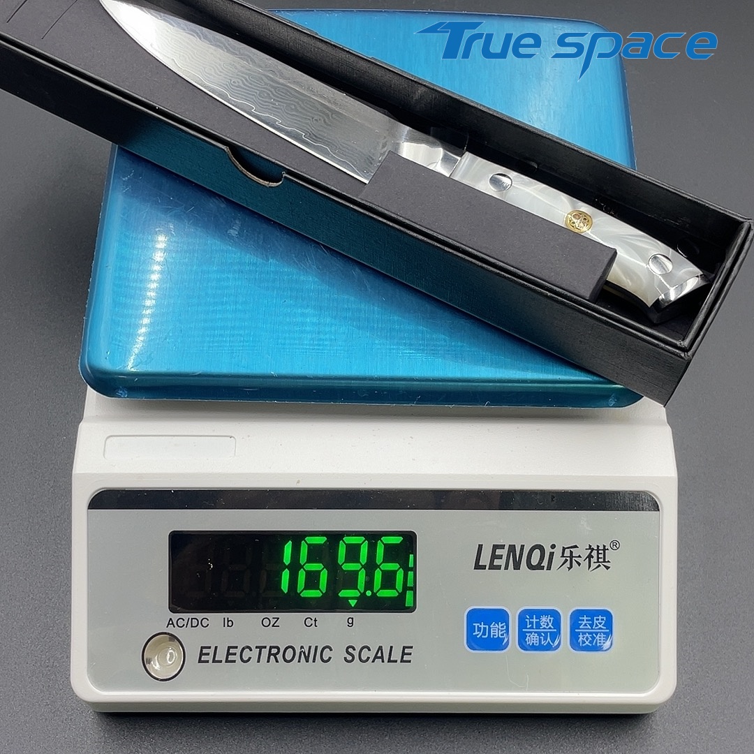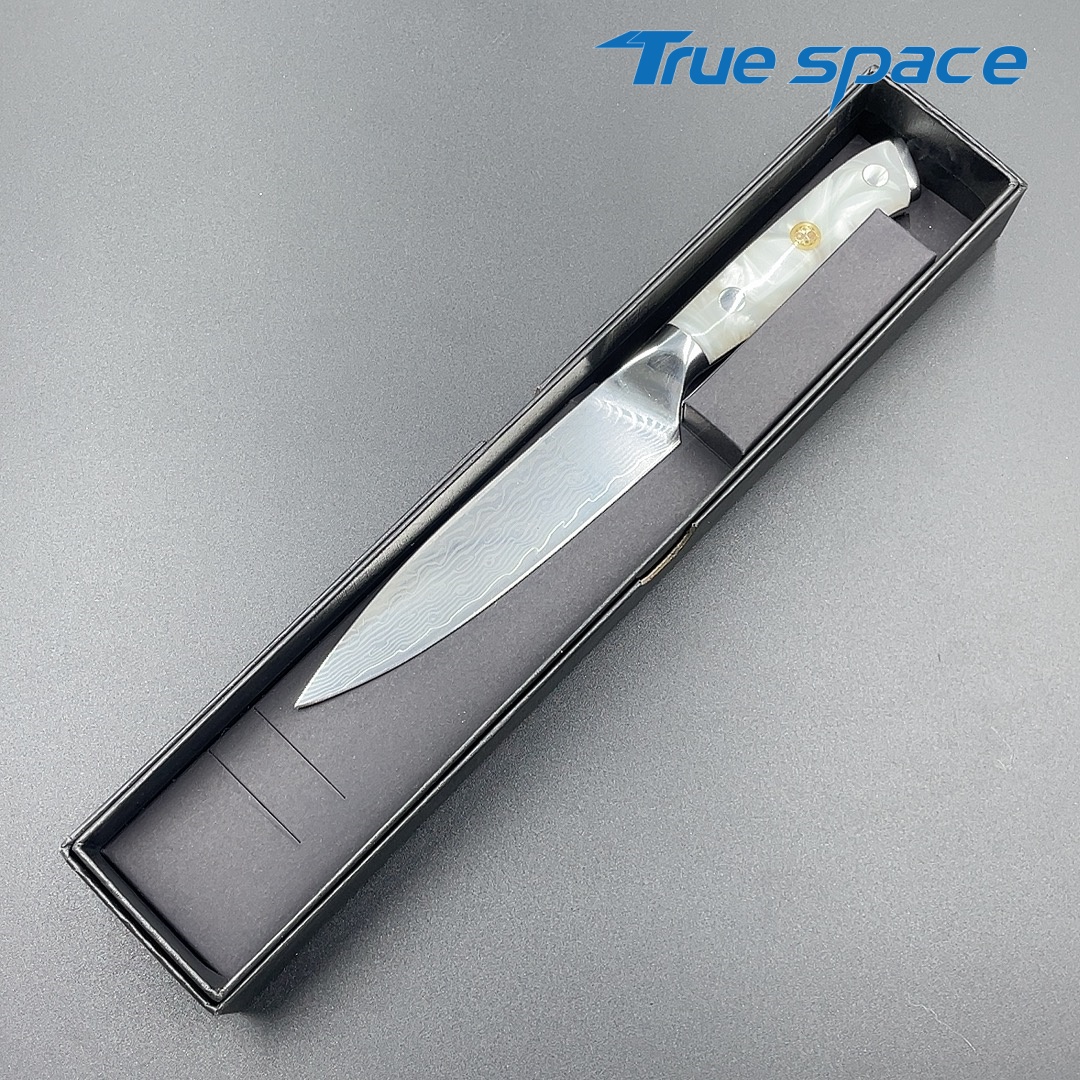 Material Damascus Steel Options 1、Multi-purpose knife 2、Multi-purpose knife with gift box Measurement 22.8*2.6cm Weight Knife only: 97.5g With gift box: 169.6g