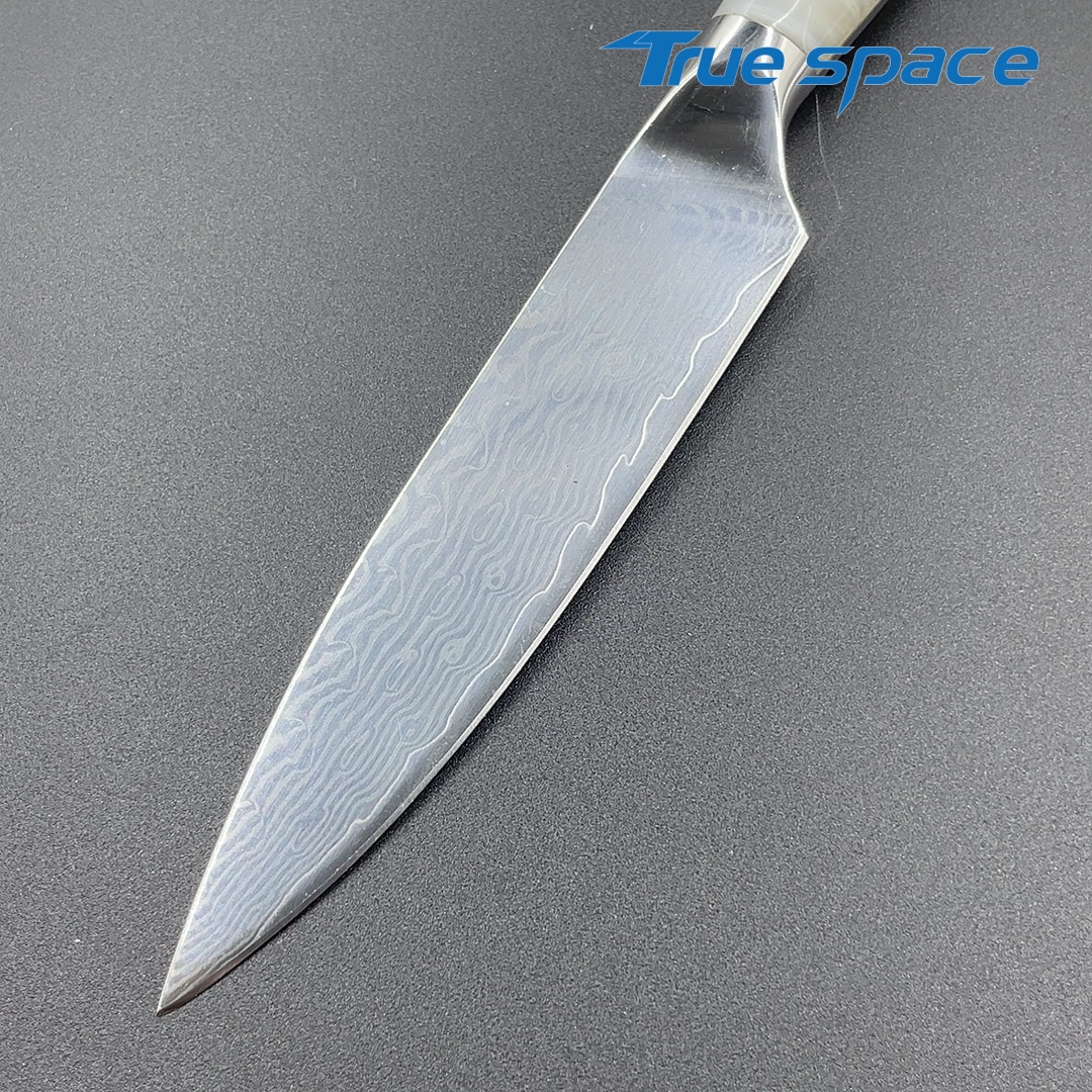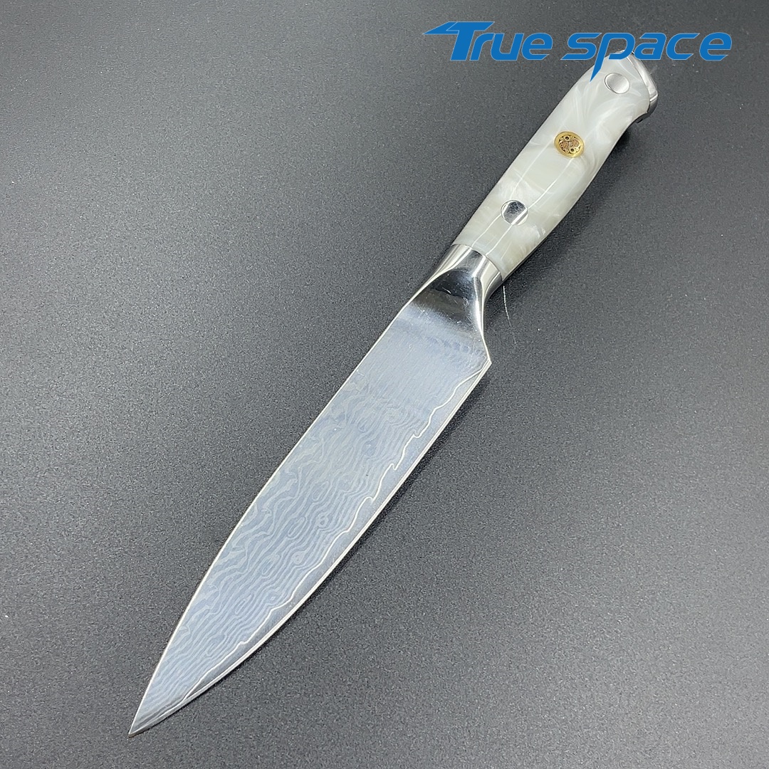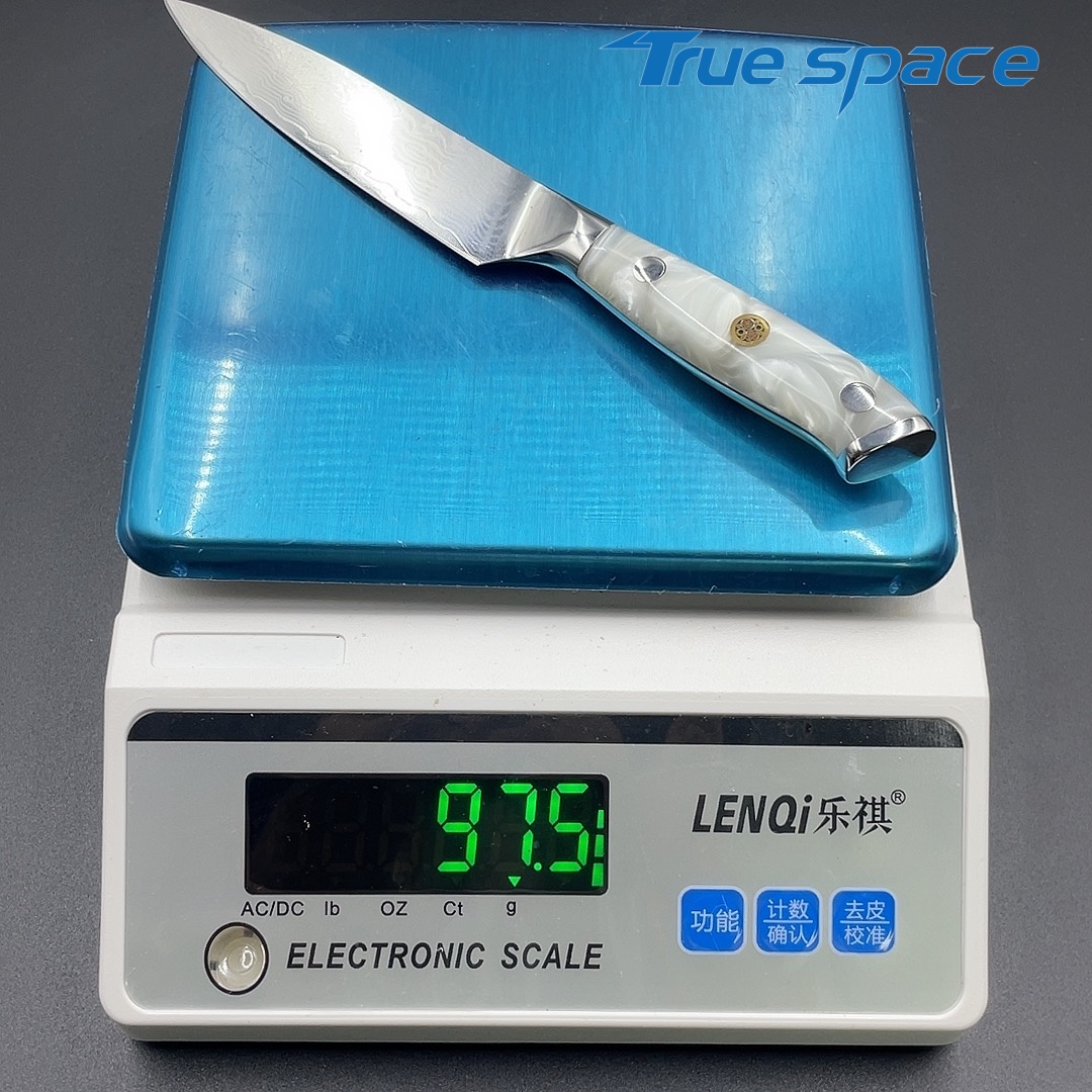 Material Damascus Steel Options 1、Multi-purpose knife 2、Multi-purpose knife with gift box Measurement 22.8*2.6cm Weight Knife only: 97.5g With gift box: 169.6g