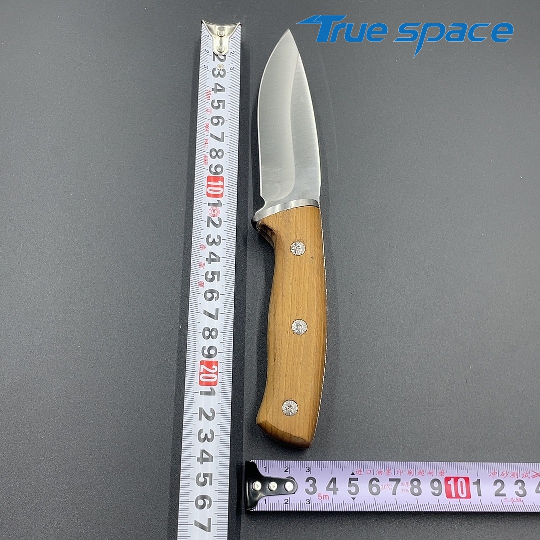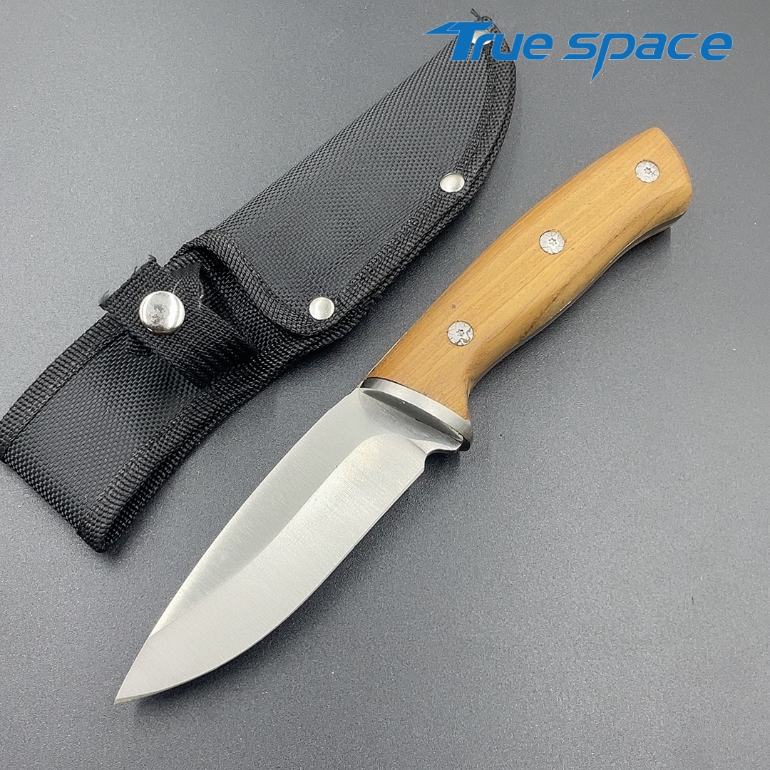 MaterialDamascus SteelOptions1、Outdoor knife2、Outdoor knife with sheathMeasurement23.5*3.7cmWeightKnife only: 235.1gWith sheath: 265.4g