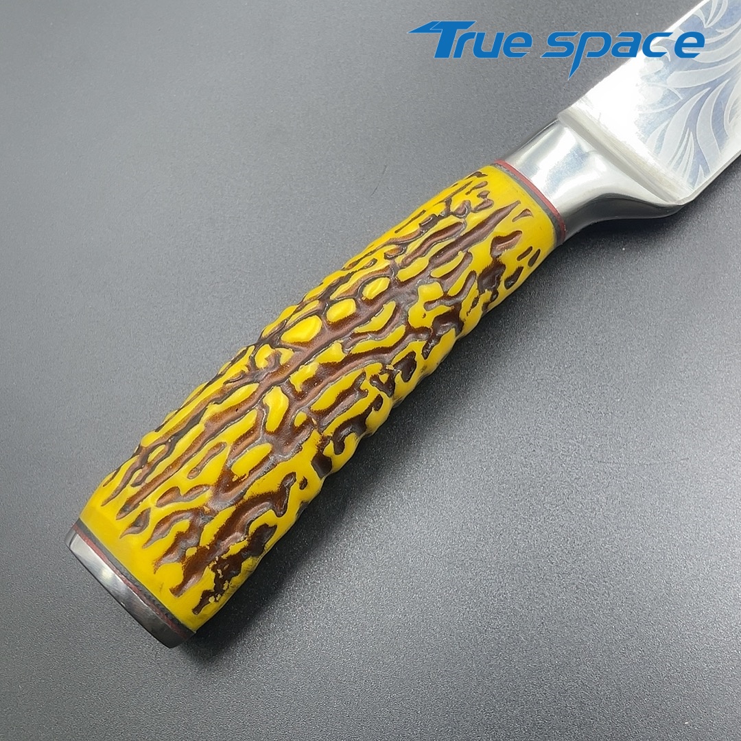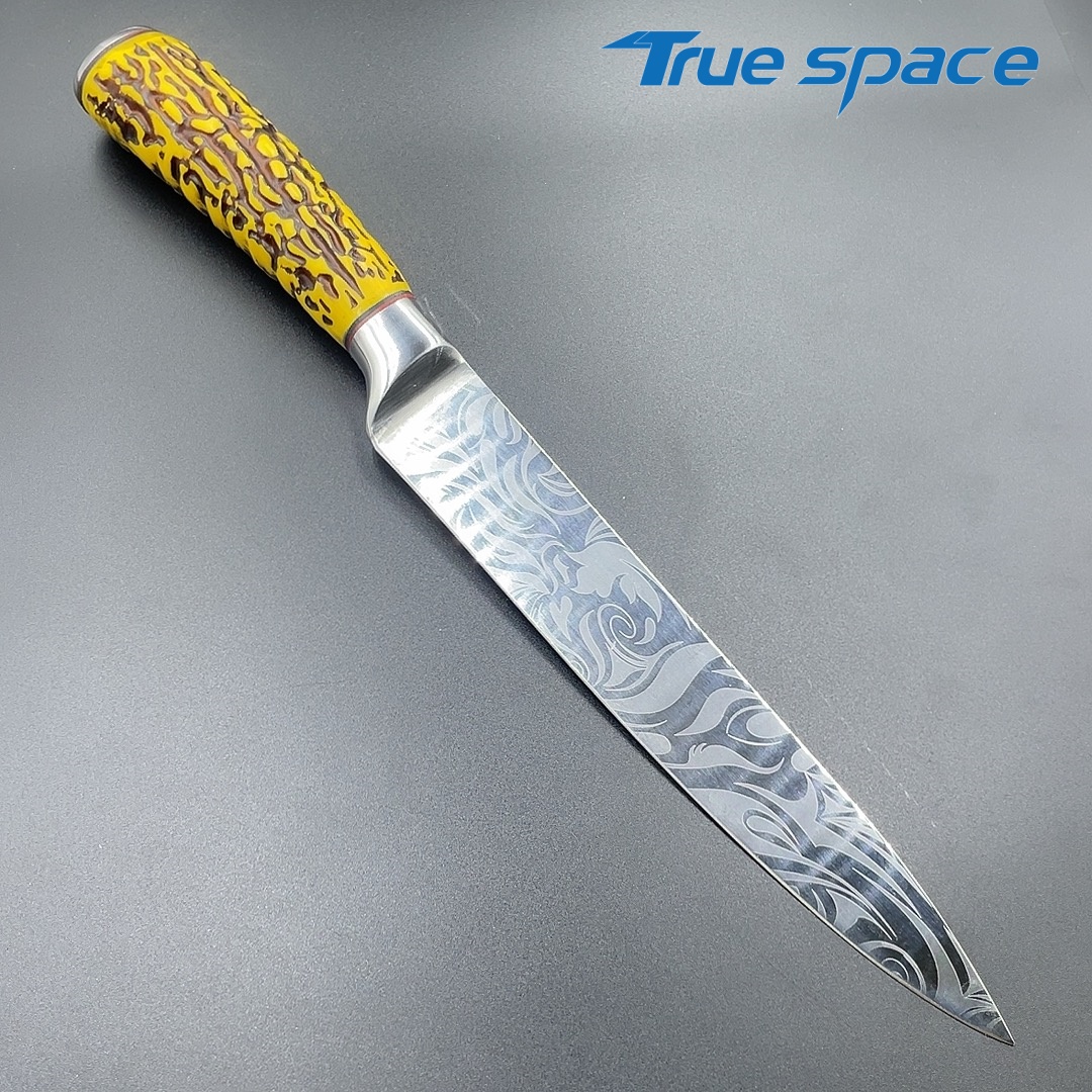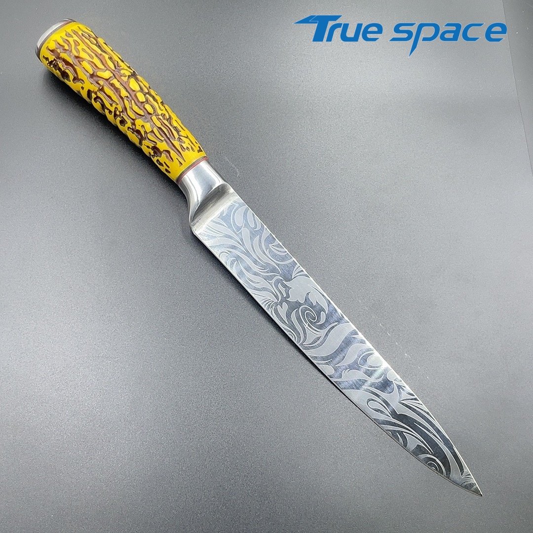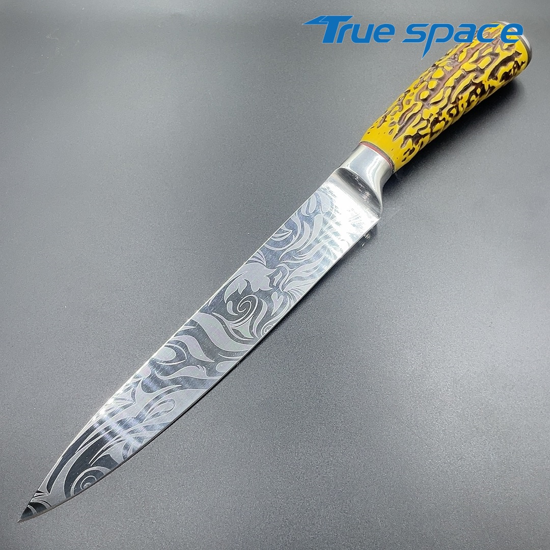 MaterialDamascus SteelOptions1、Slicing knife2、Slicing knife with gift boxMeasurement31.3*3cmWeightKnife only: 159.3gWith gift box: 282.4g