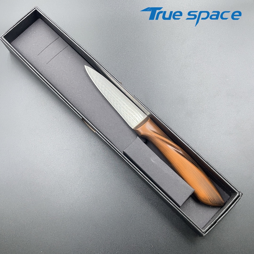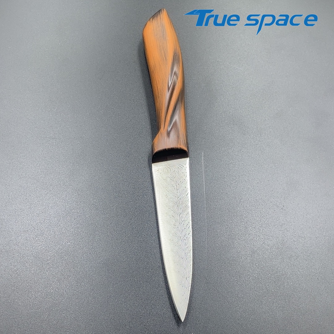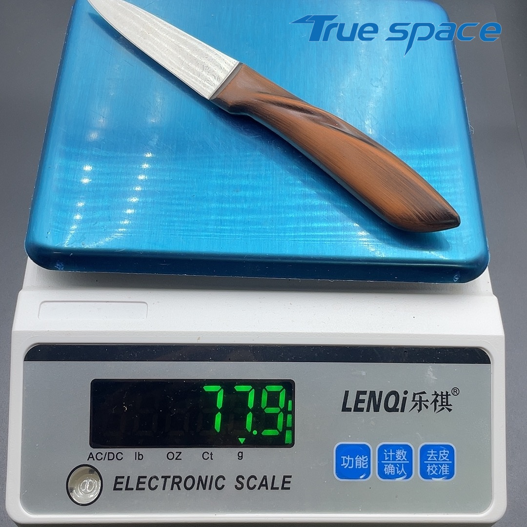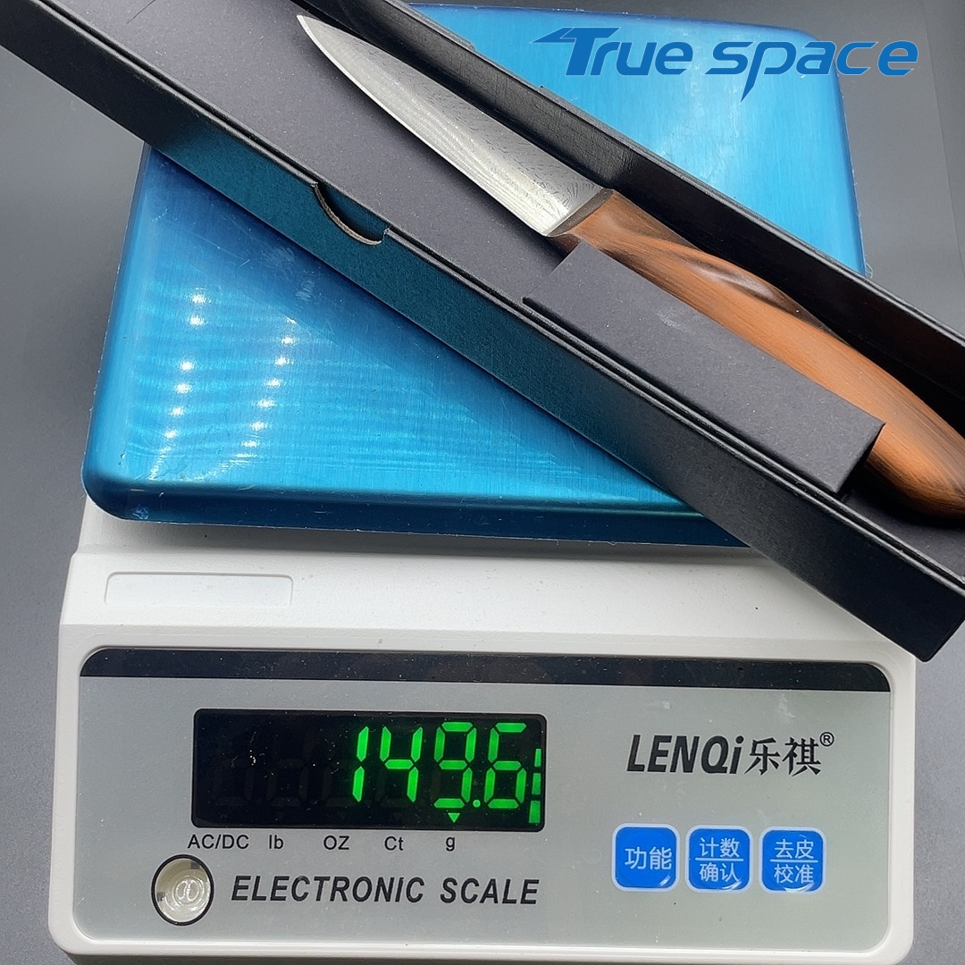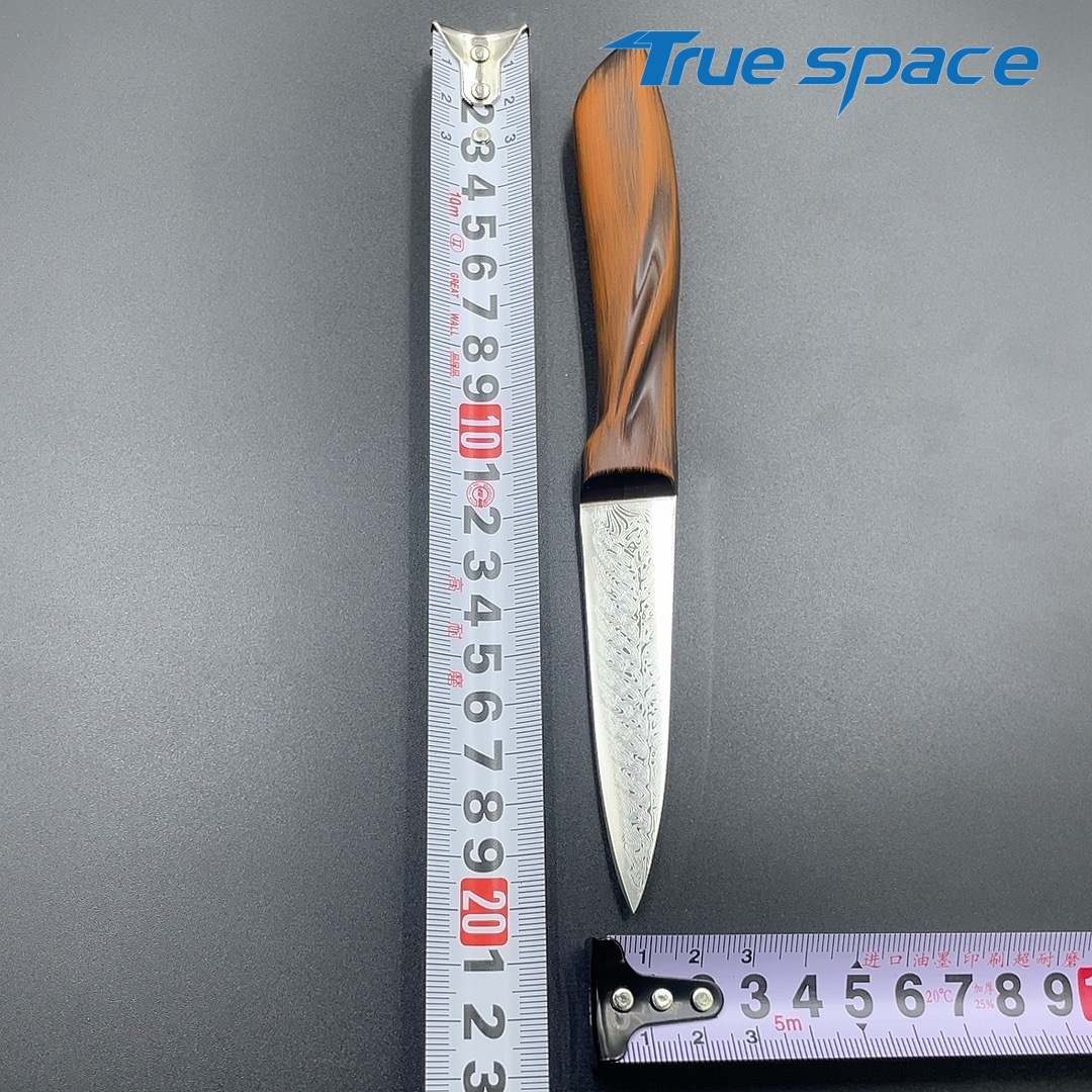 MaterialDamascus SteelOptions1、Fruit knife2、Fruit knife with gift boxMeasurement20.3*2.1cmWeightKnife only: 77.9gWith gift box: 149.6g