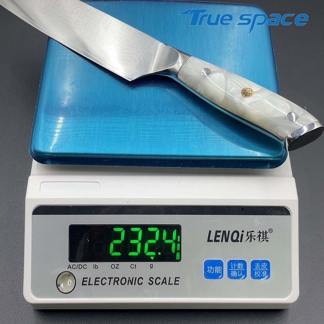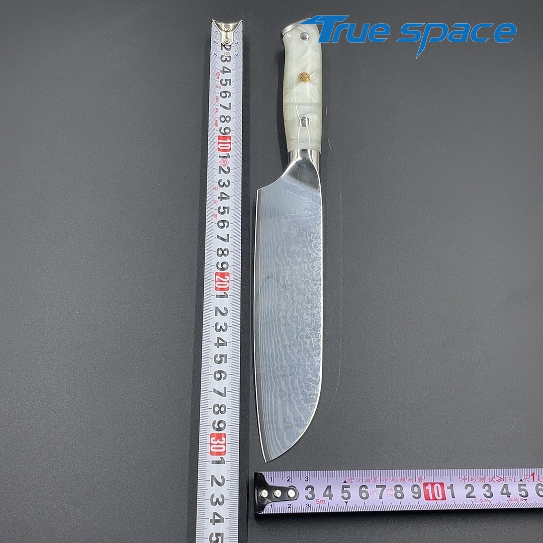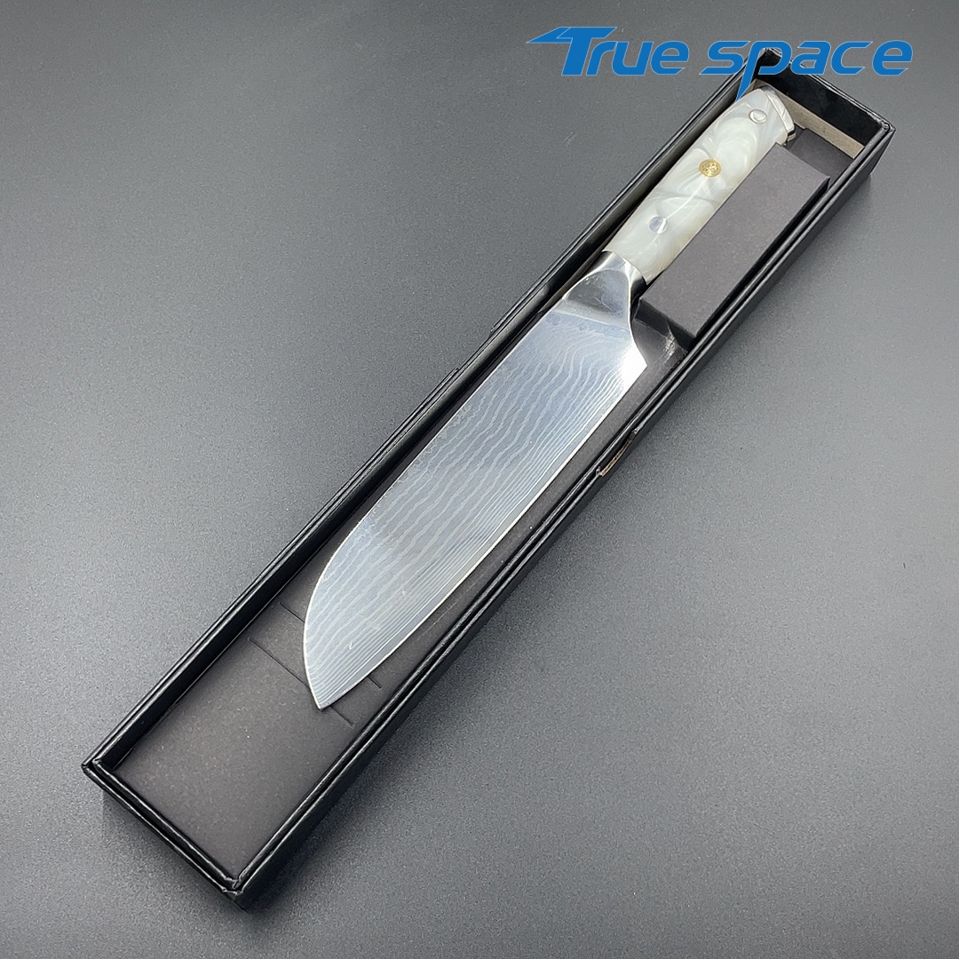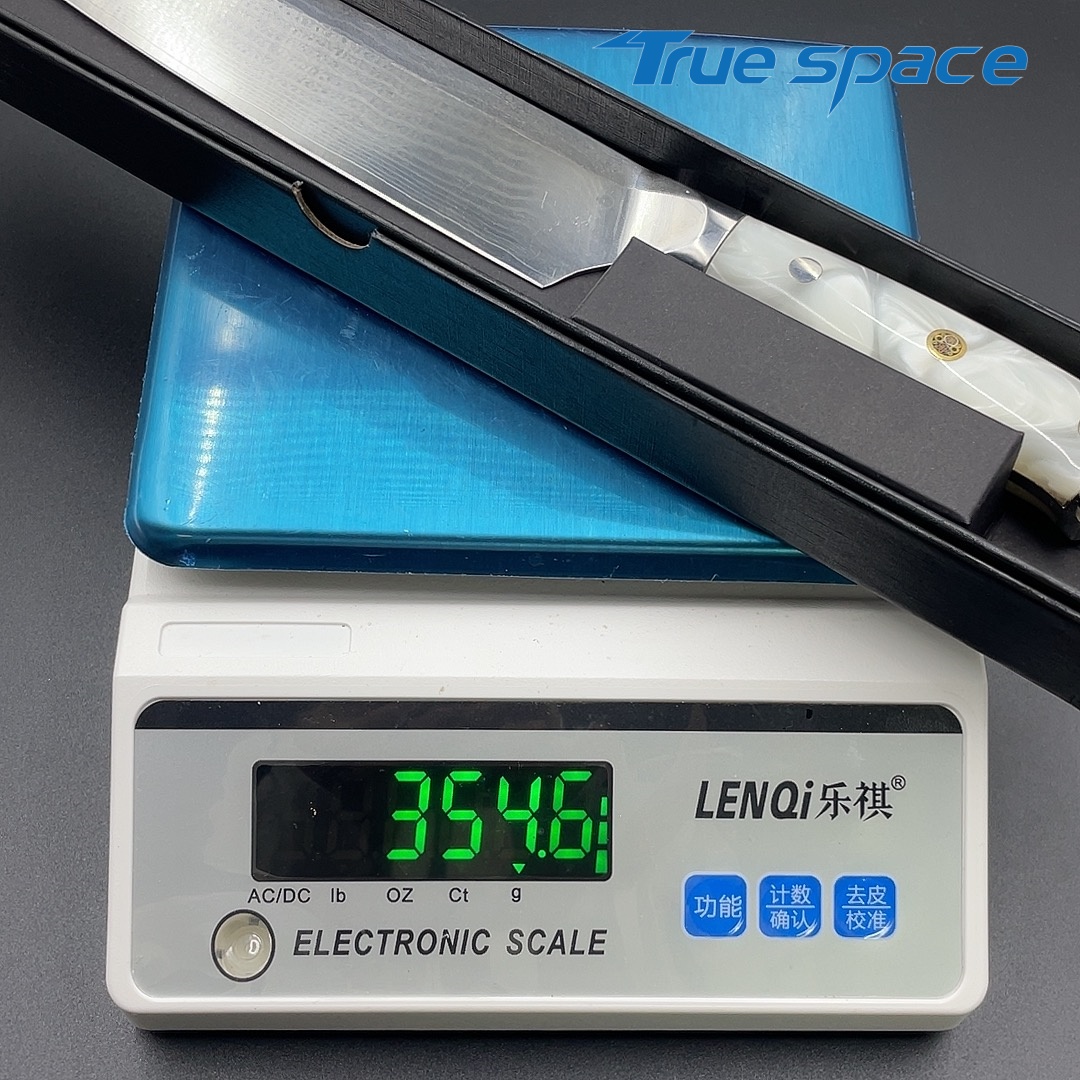 MaterialDamascus SteelOptions1、Three virtue knife2、Three virtue with gift boxMeasurement31*4.4cmWeightKnife only: 232.4gWith gift box: 354.6g