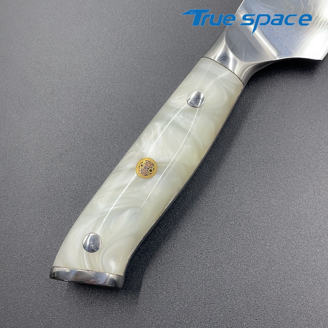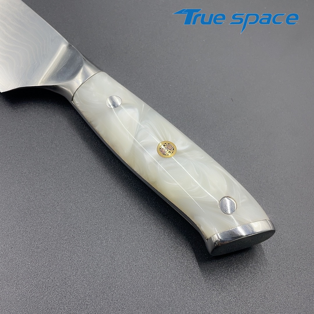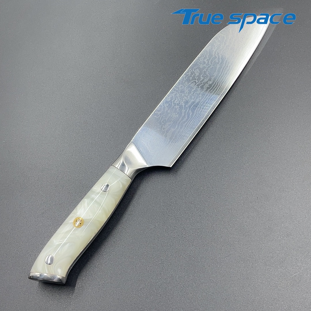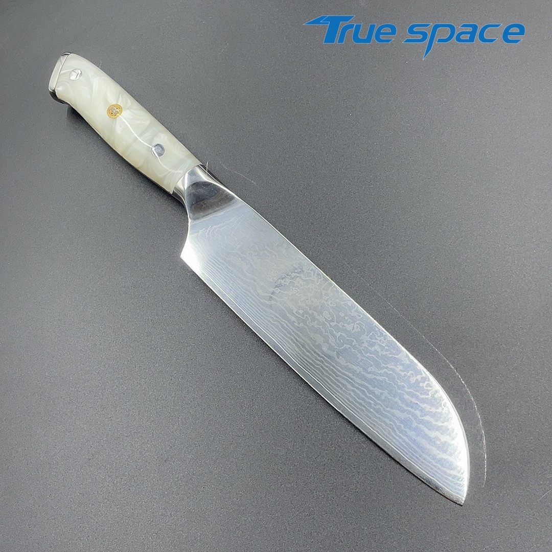 MaterialDamascus SteelOptions1、Three virtue knife2、Three virtue with gift boxMeasurement31*4.4cmWeightKnife only: 232.4gWith gift box: 354.6g