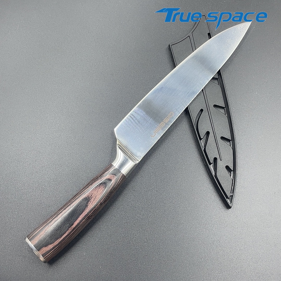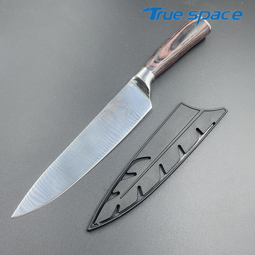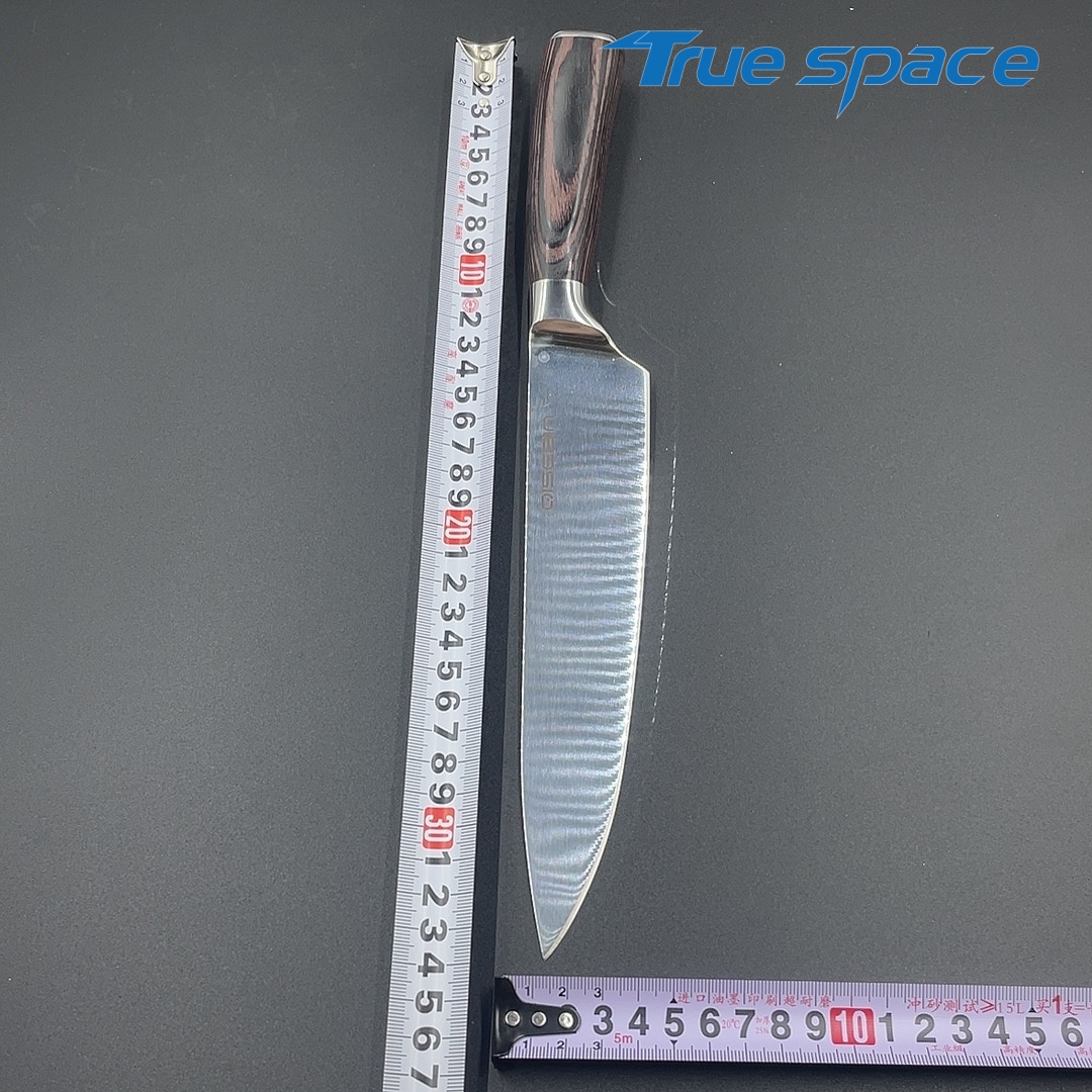 MaterialDamascus SteelOptions1、Chef knife2、Chef knife with gift boxMeasurement33.4*4.1cmWeightKnife only: 202.6gWith gift box: 367.6g