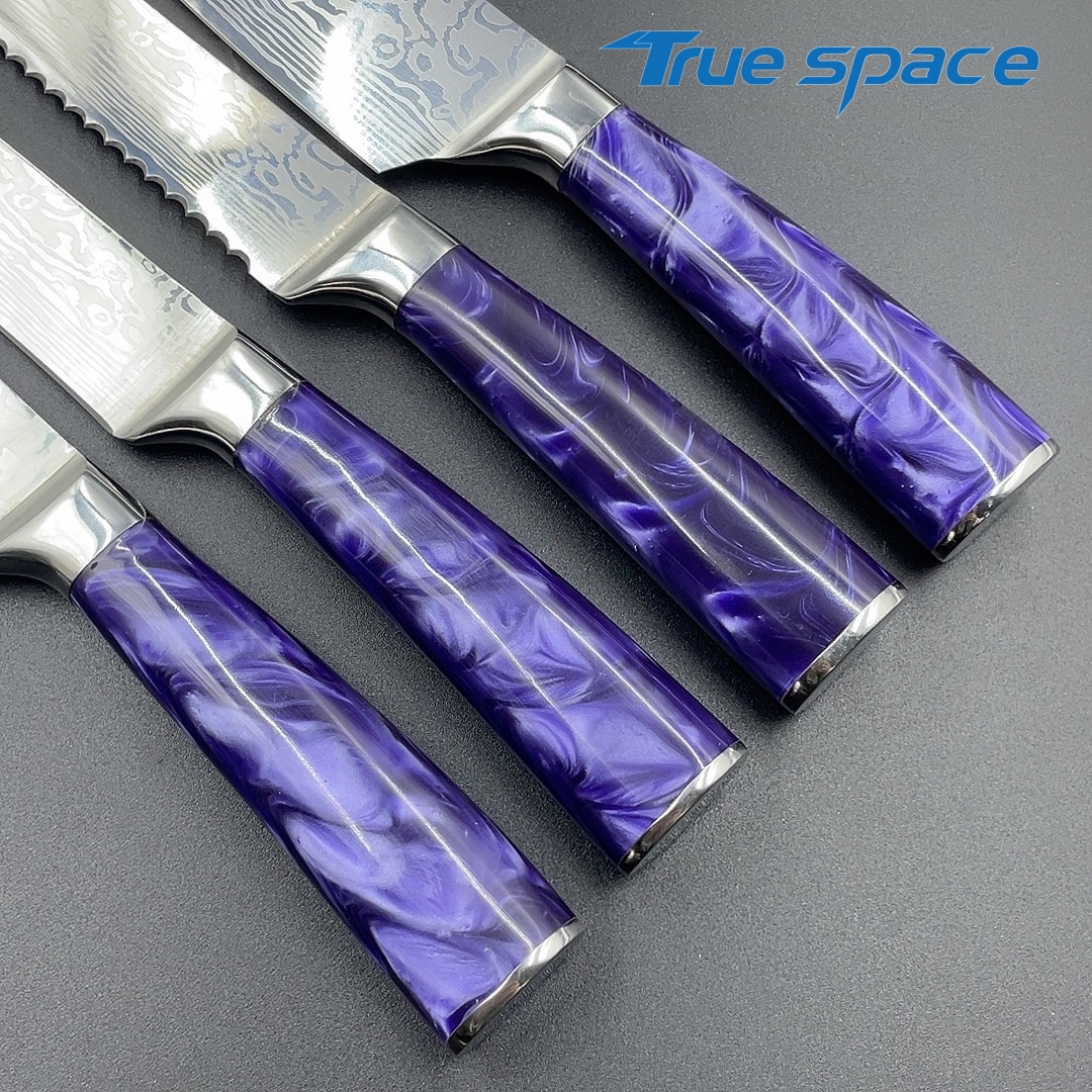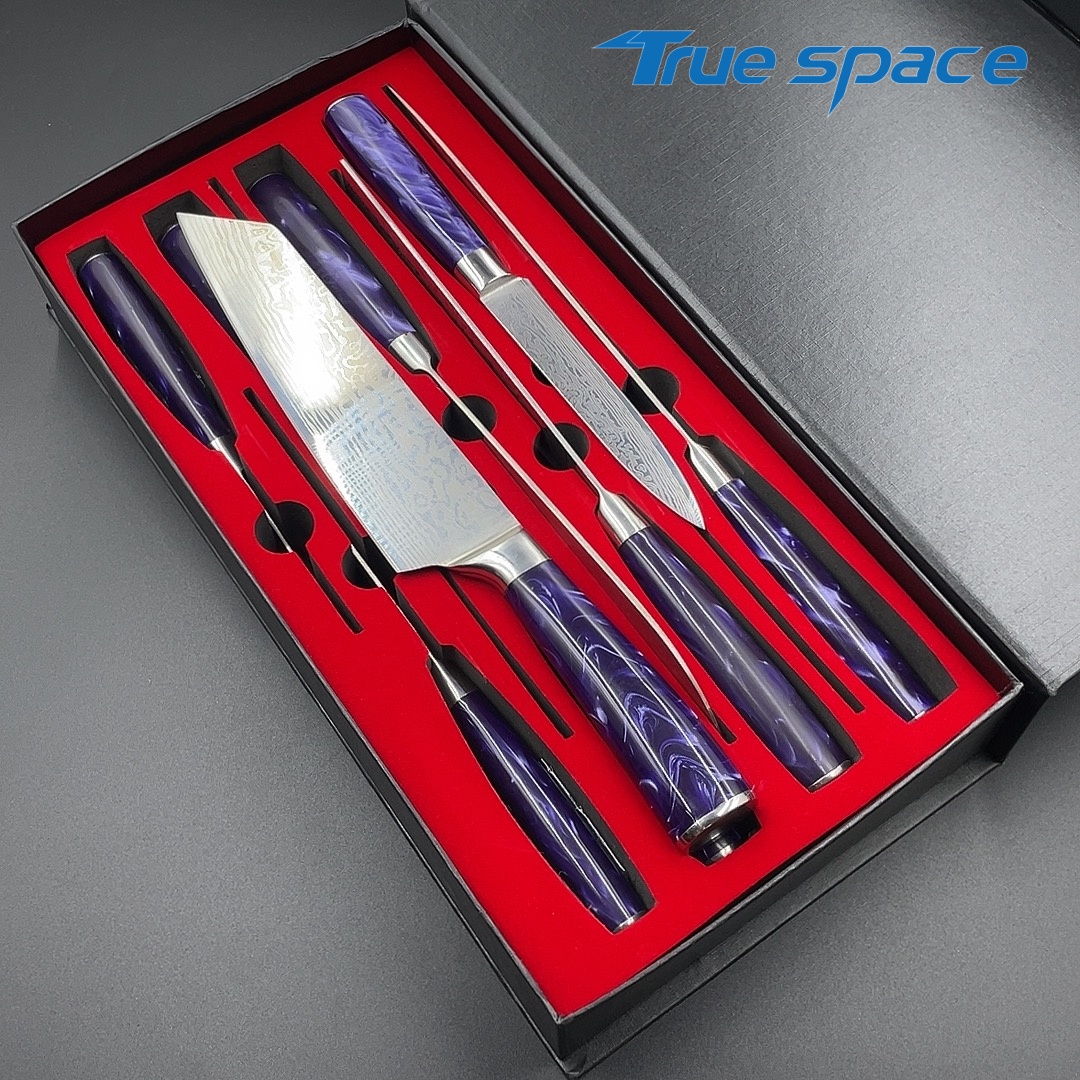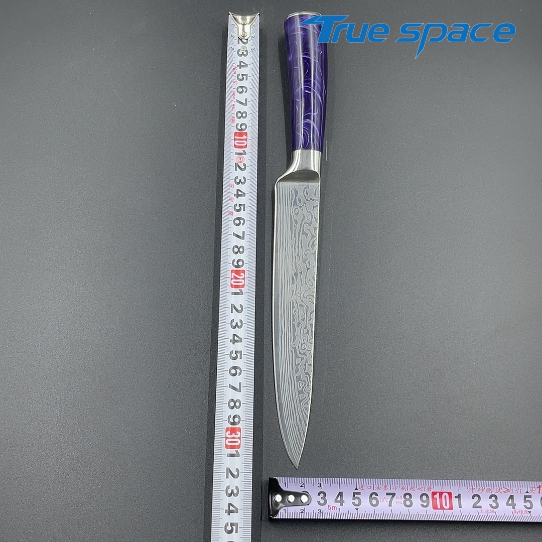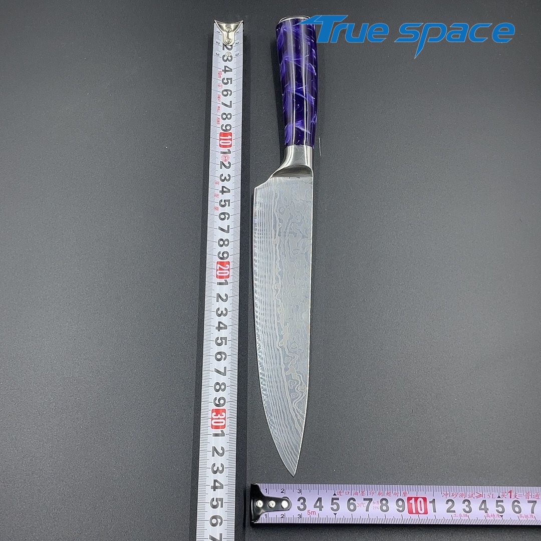 Material Blade Material: Damascus Steel Handle Material: Resin Options 10-piece Damascus knife set with gift box(带礼盒的大马士革套刀10件) Measurement 37.5*18.7*6.5cm Weight 1946.7g