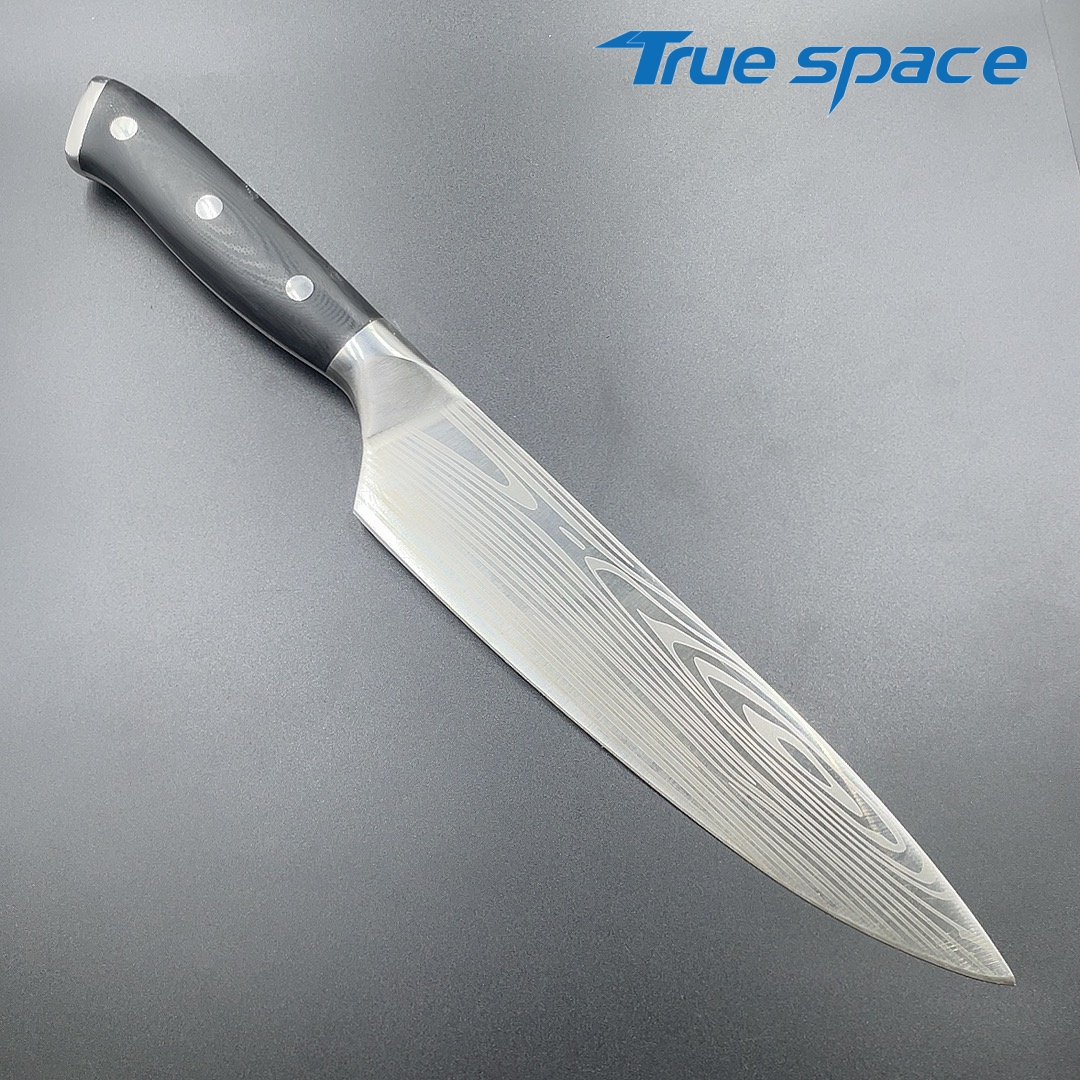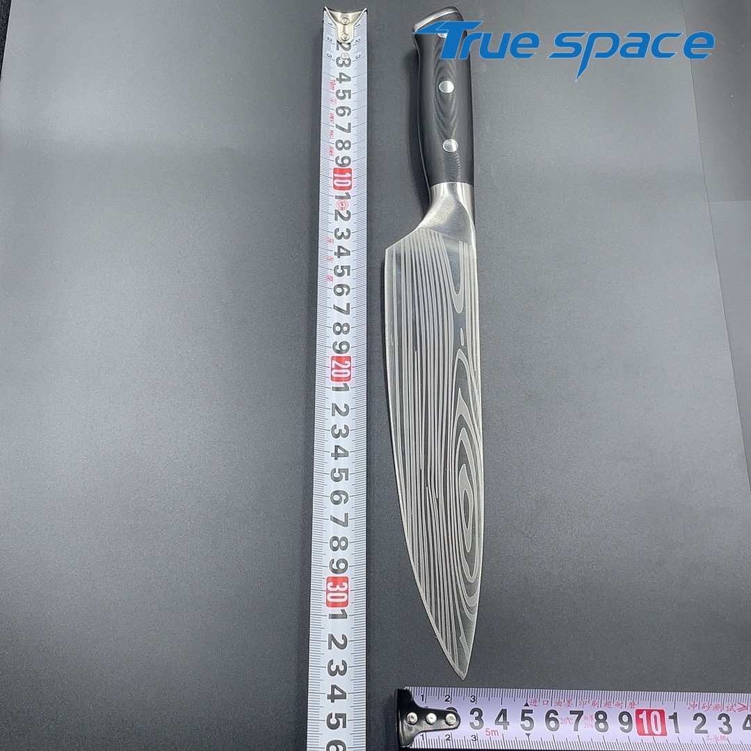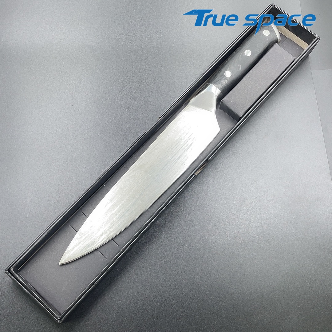 MaterialDamascus SteelOptions1、Chef knife2、Chef knife with gift boxMeasurement33.6*4.3cmWeightKnife only: 256.5gWith gift box: 377.7g