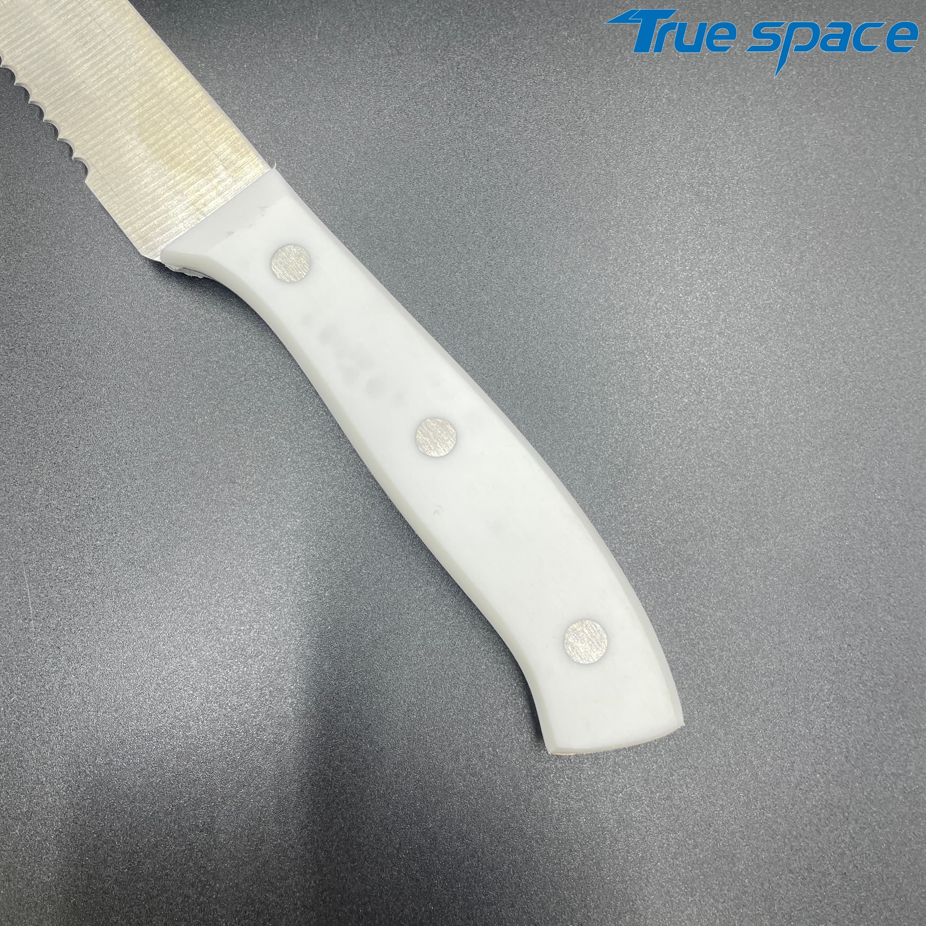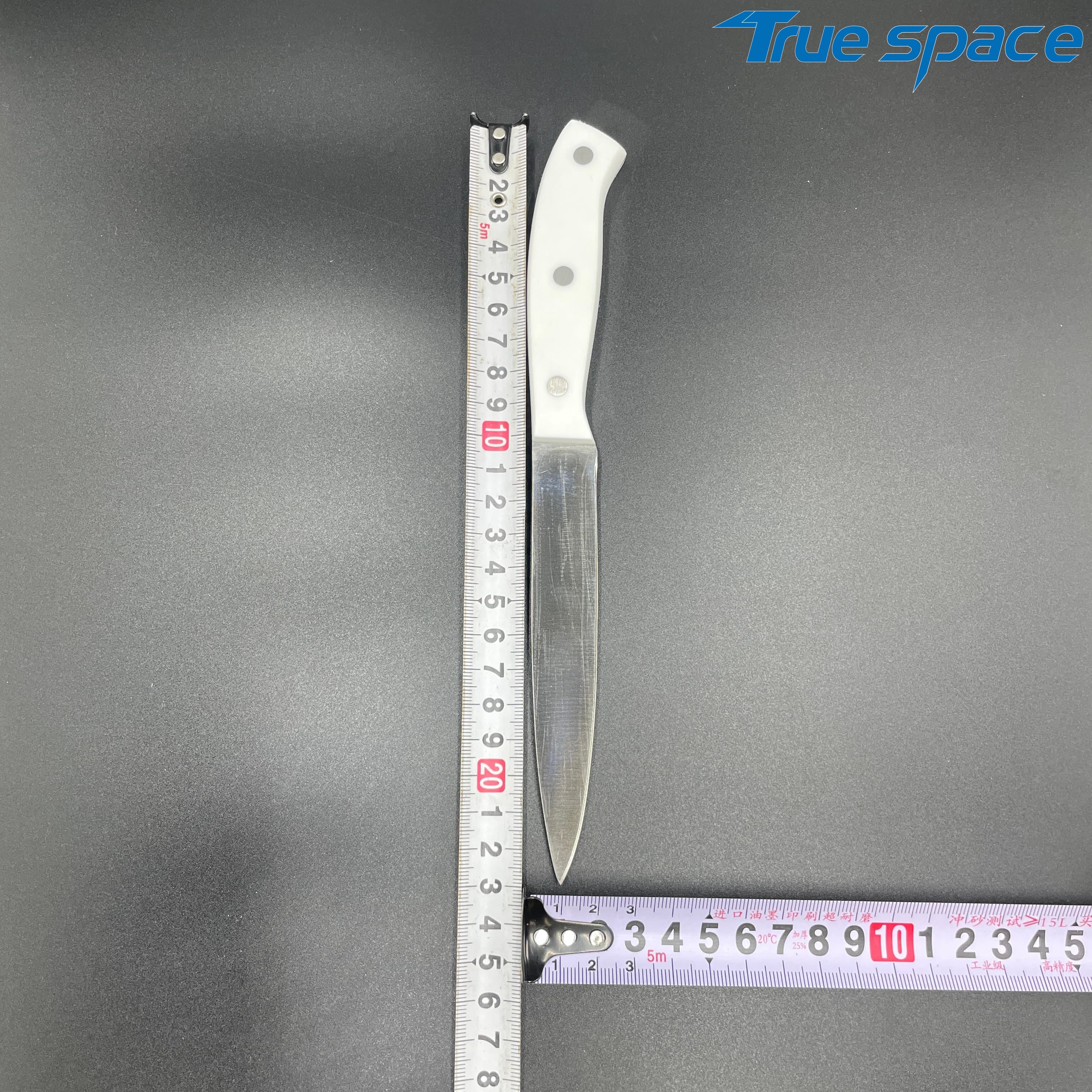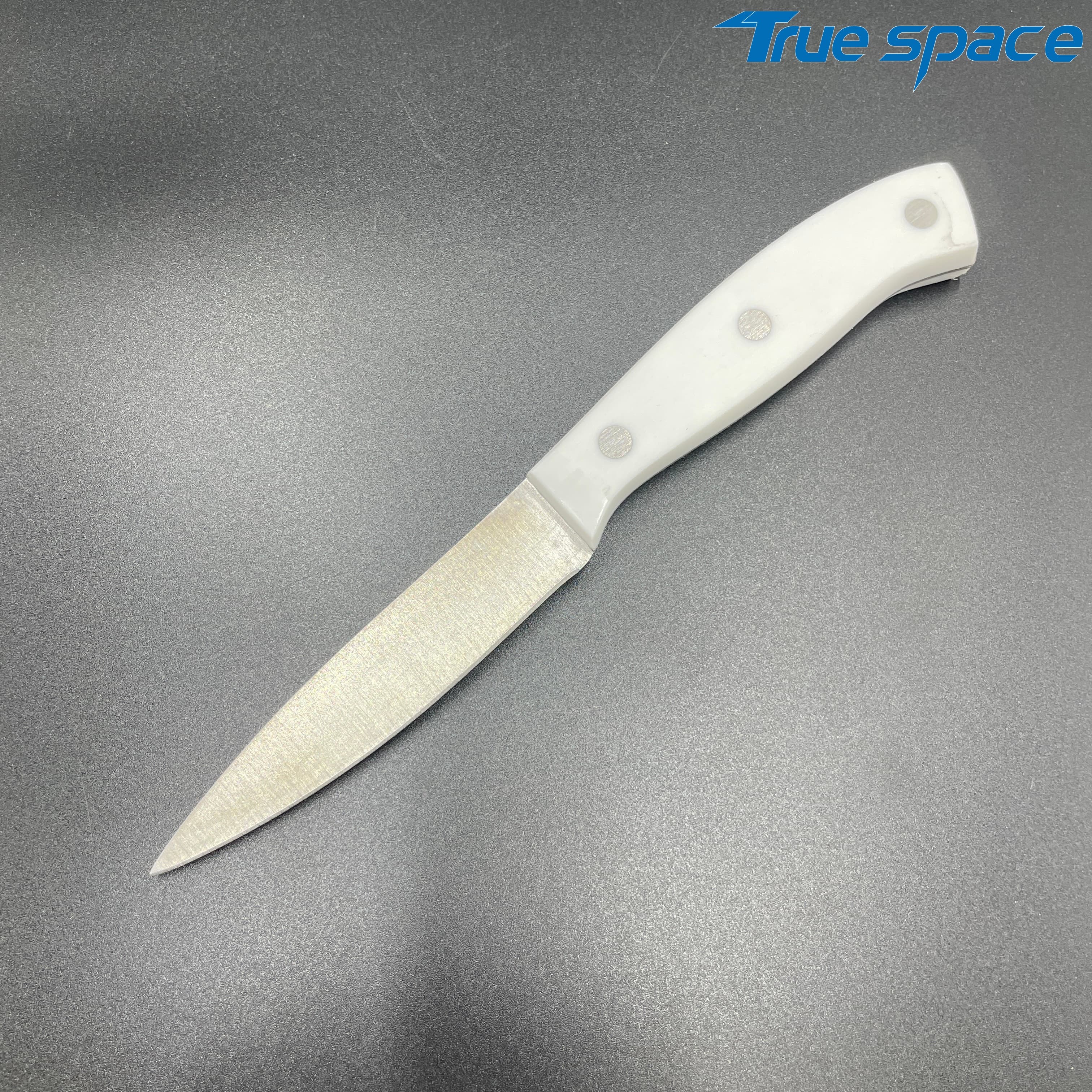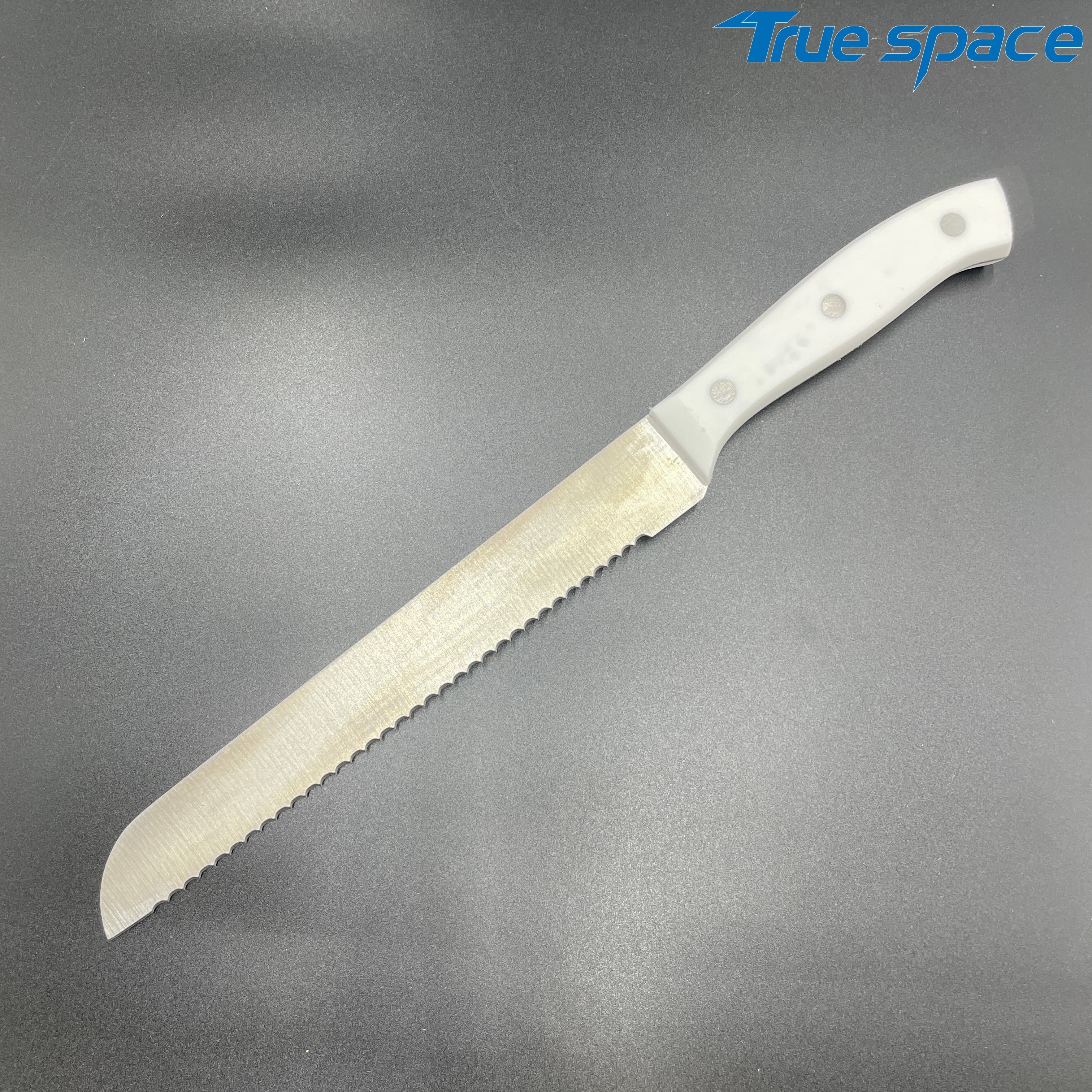 MeasurementFruit knife: 19.8 * 1.8 cmMulti-functional knife: 20 * 1.9 cmSlicing knife: 33 * 2.8 cmToothed knife: 33 * 2.7 cmChef’s knife: 32.2 * 4.2 cmMaterialBlade: Stainless steelHandle:PlasticWeight415.3gOptions/