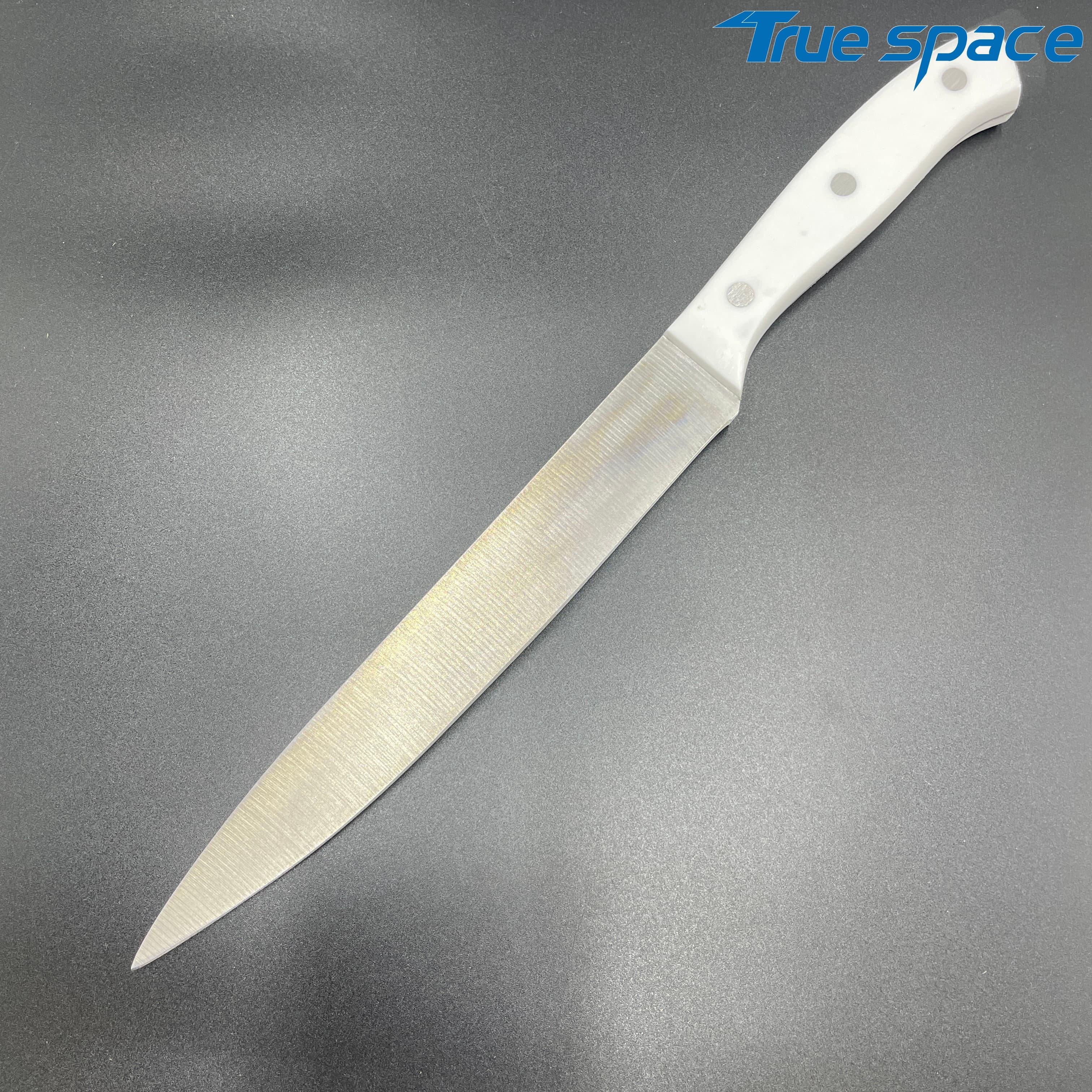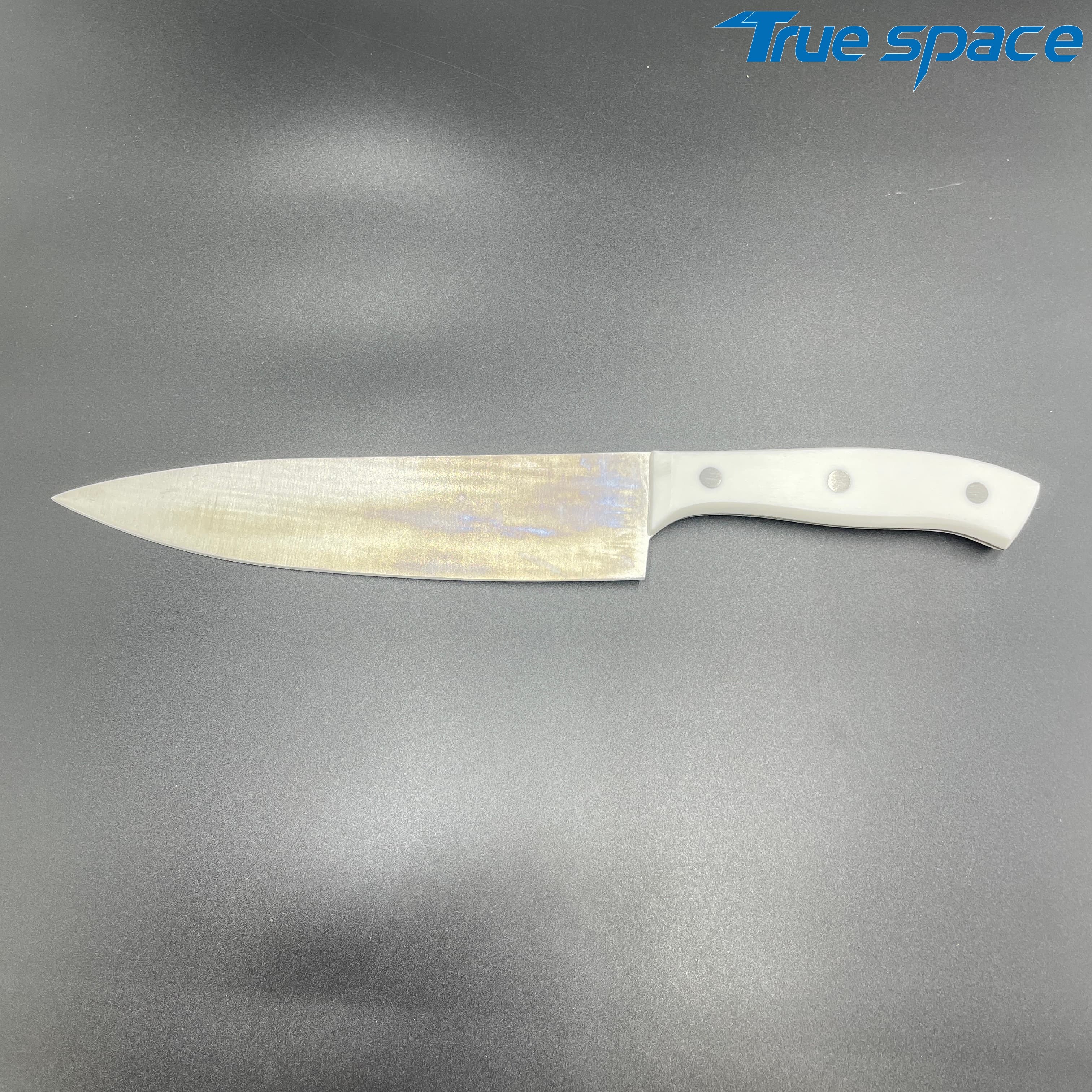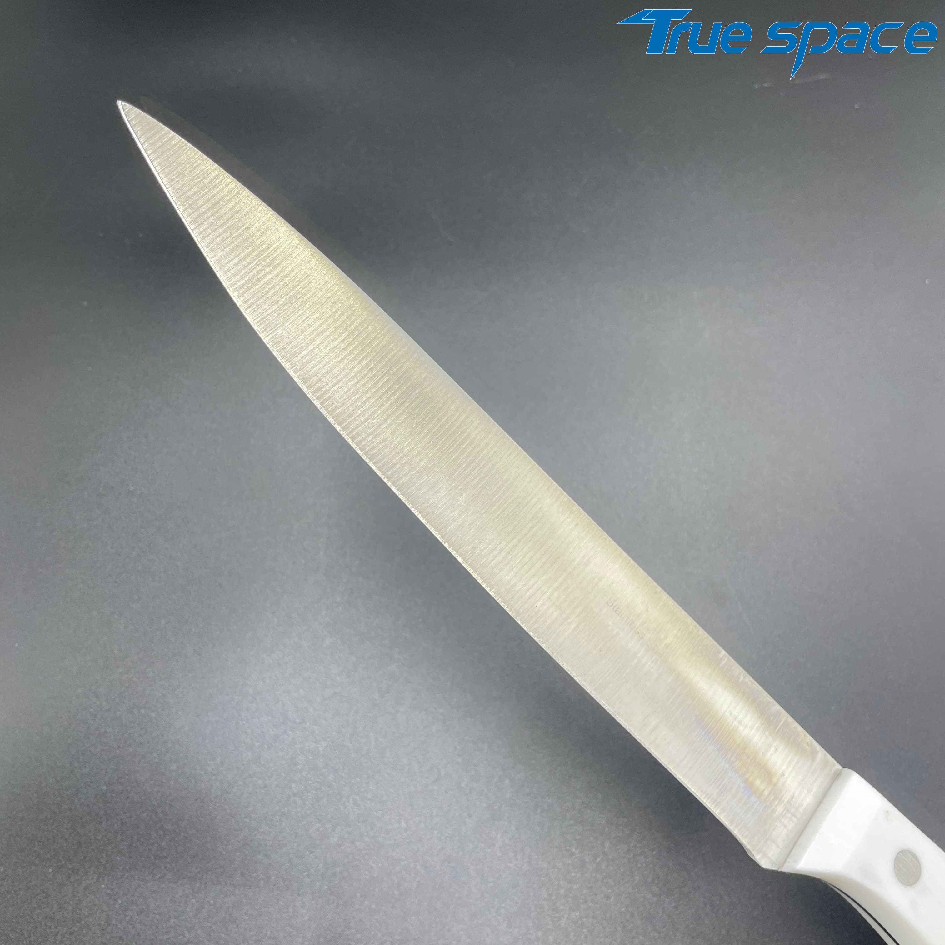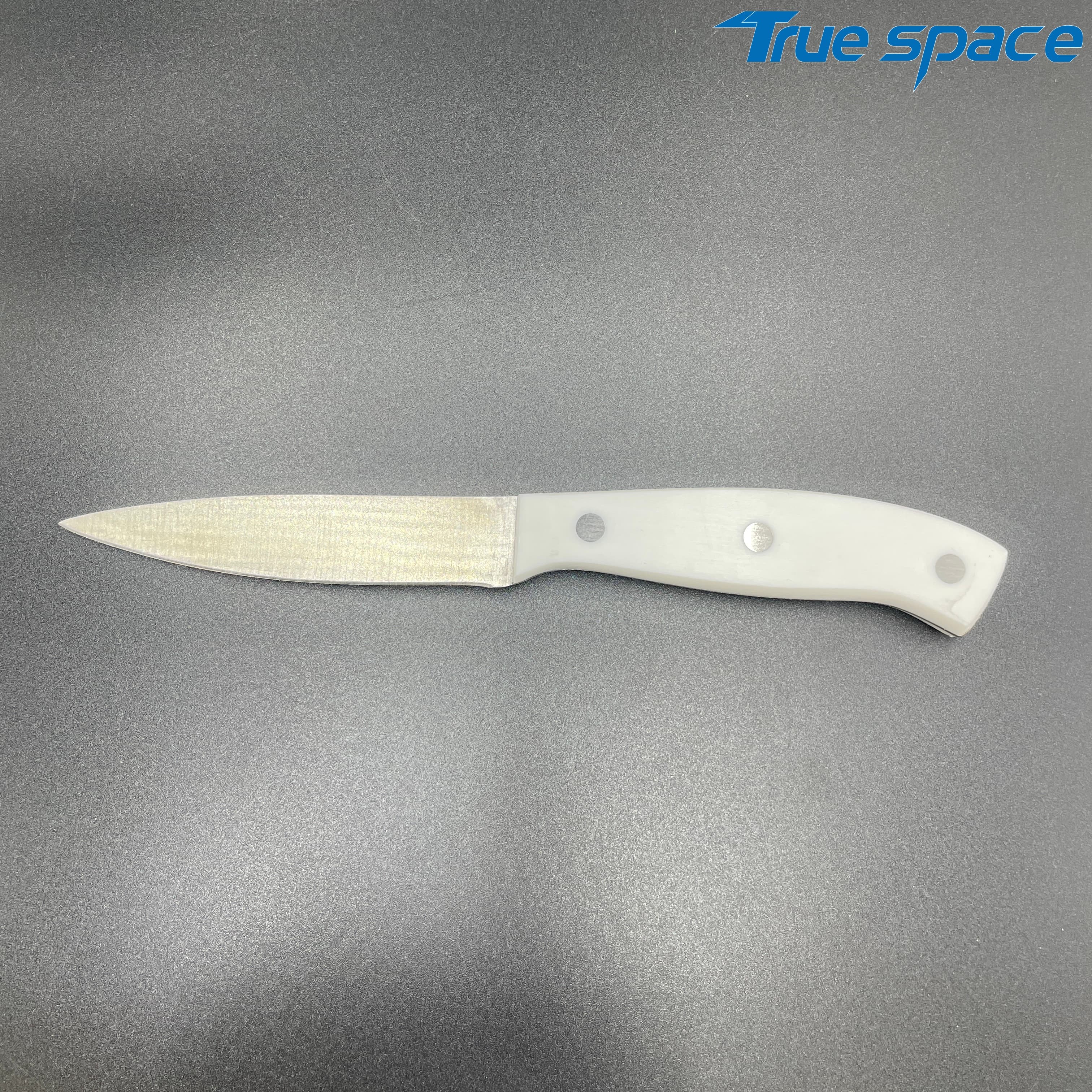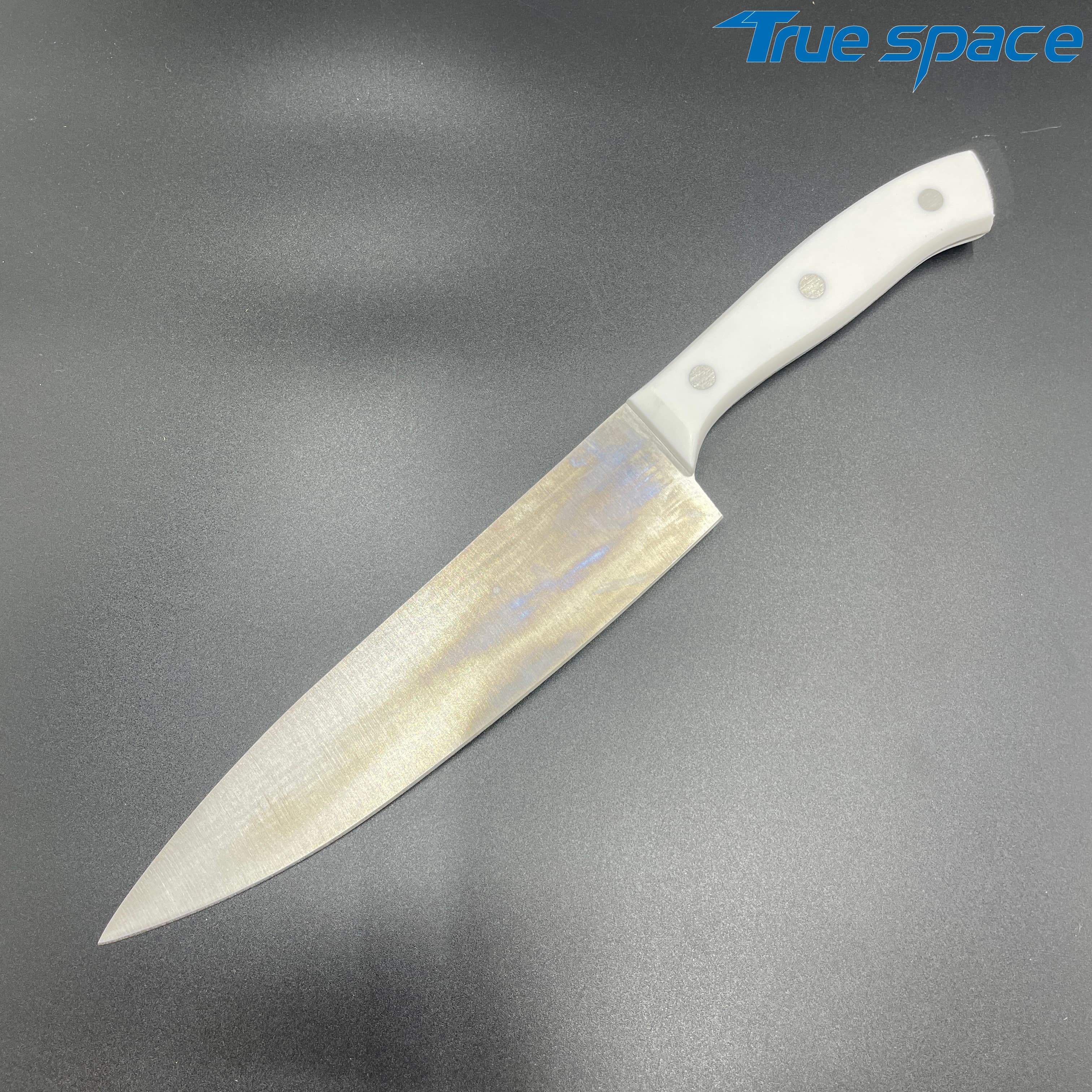 MeasurementFruit knife: 19.8 * 1.8 cmMulti-functional knife: 20 * 1.9 cmSlicing knife: 33 * 2.8 cmToothed knife: 33 * 2.7 cmChef’s knife: 32.2 * 4.2 cmMaterialBlade: Stainless steelHandle:PlasticWeight415.3gOptions/