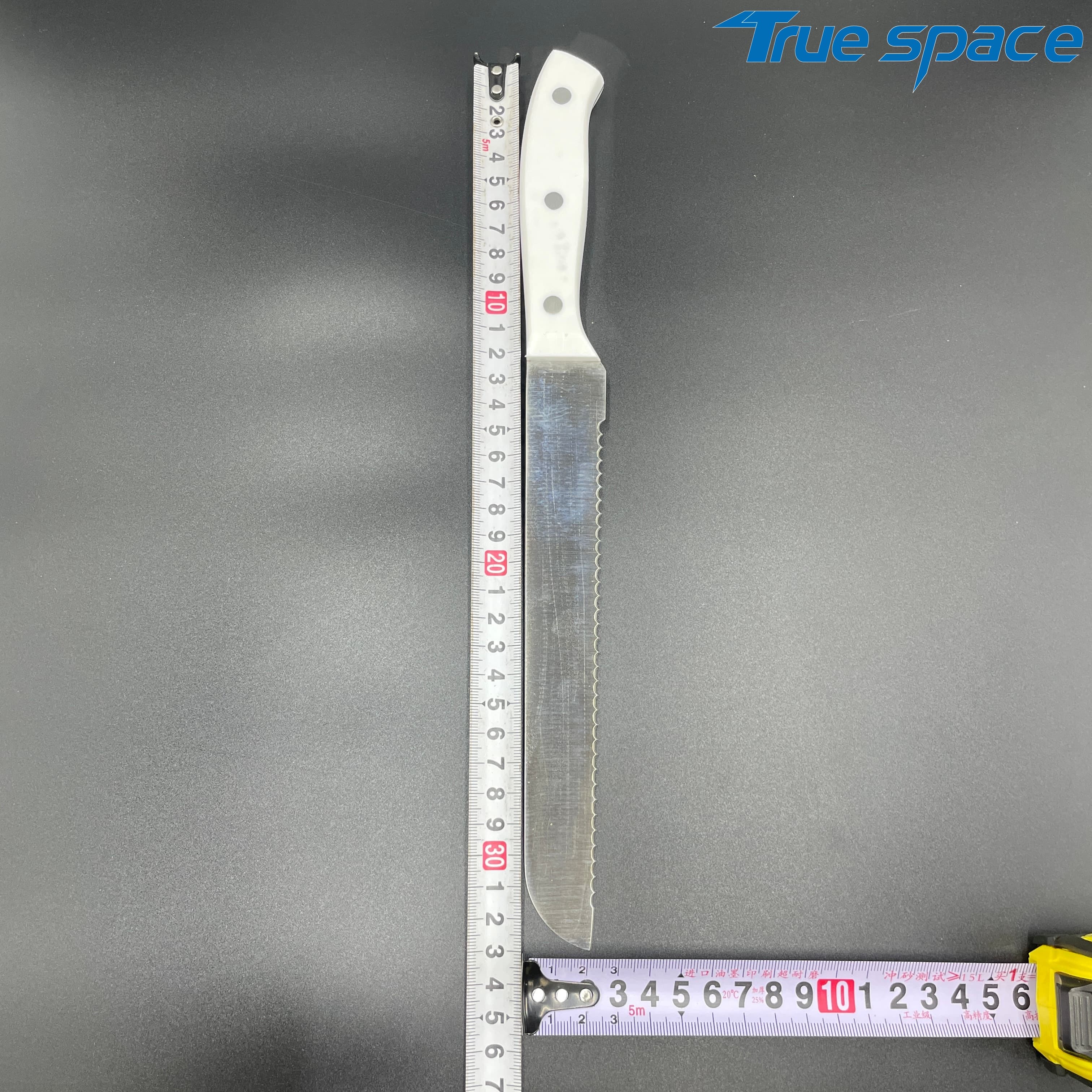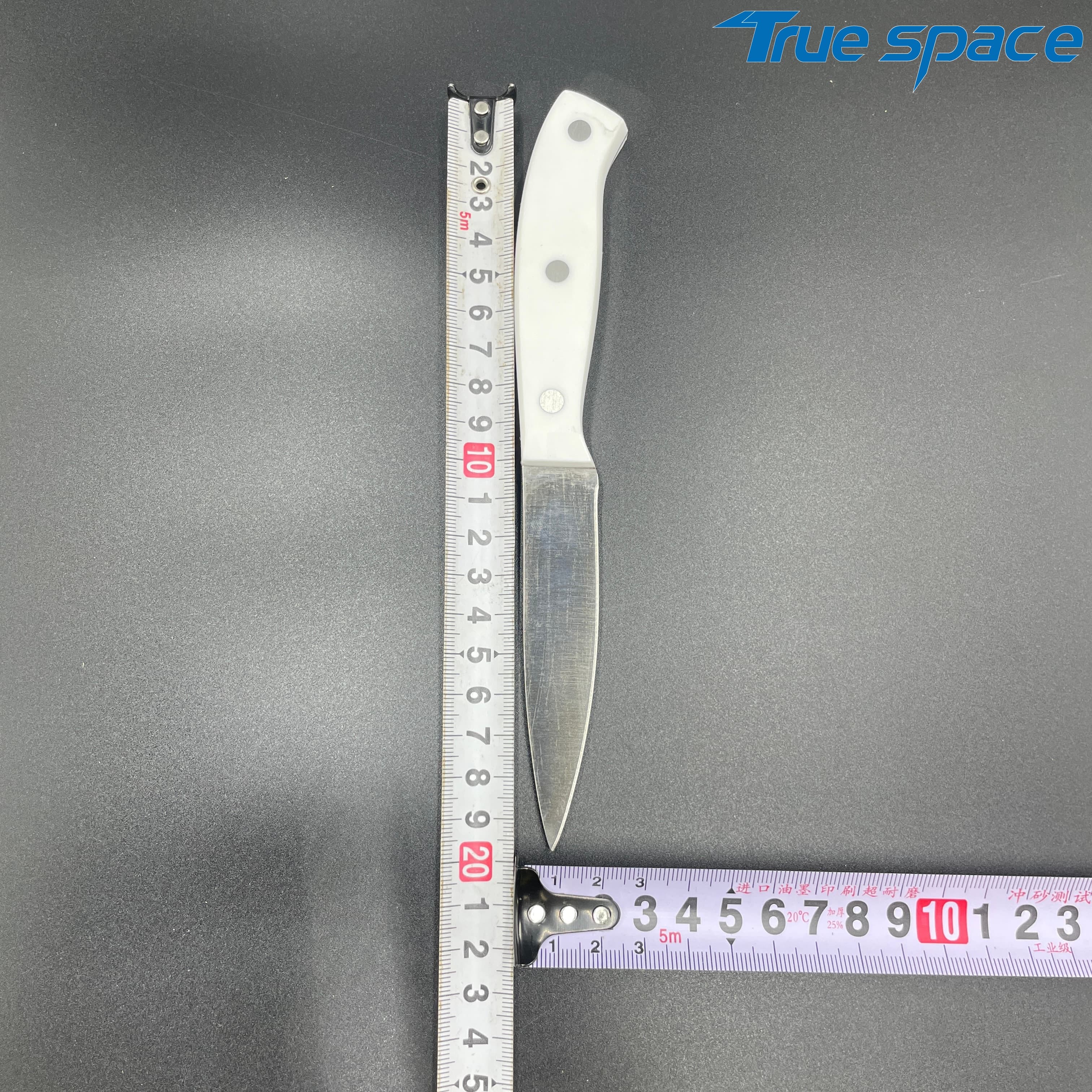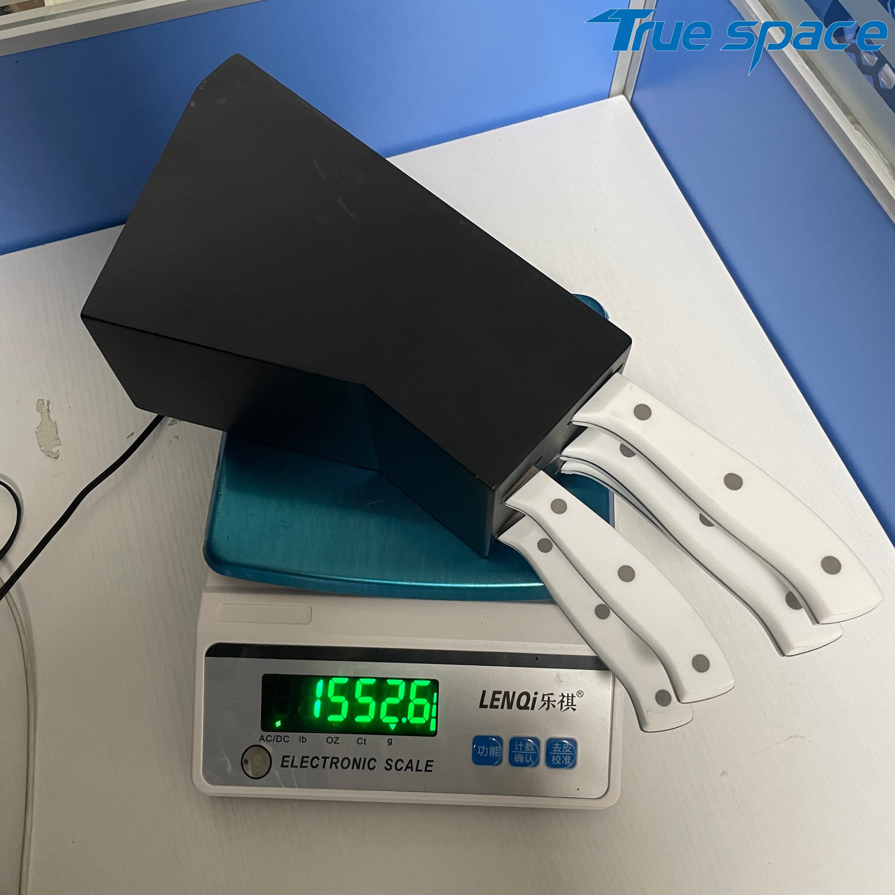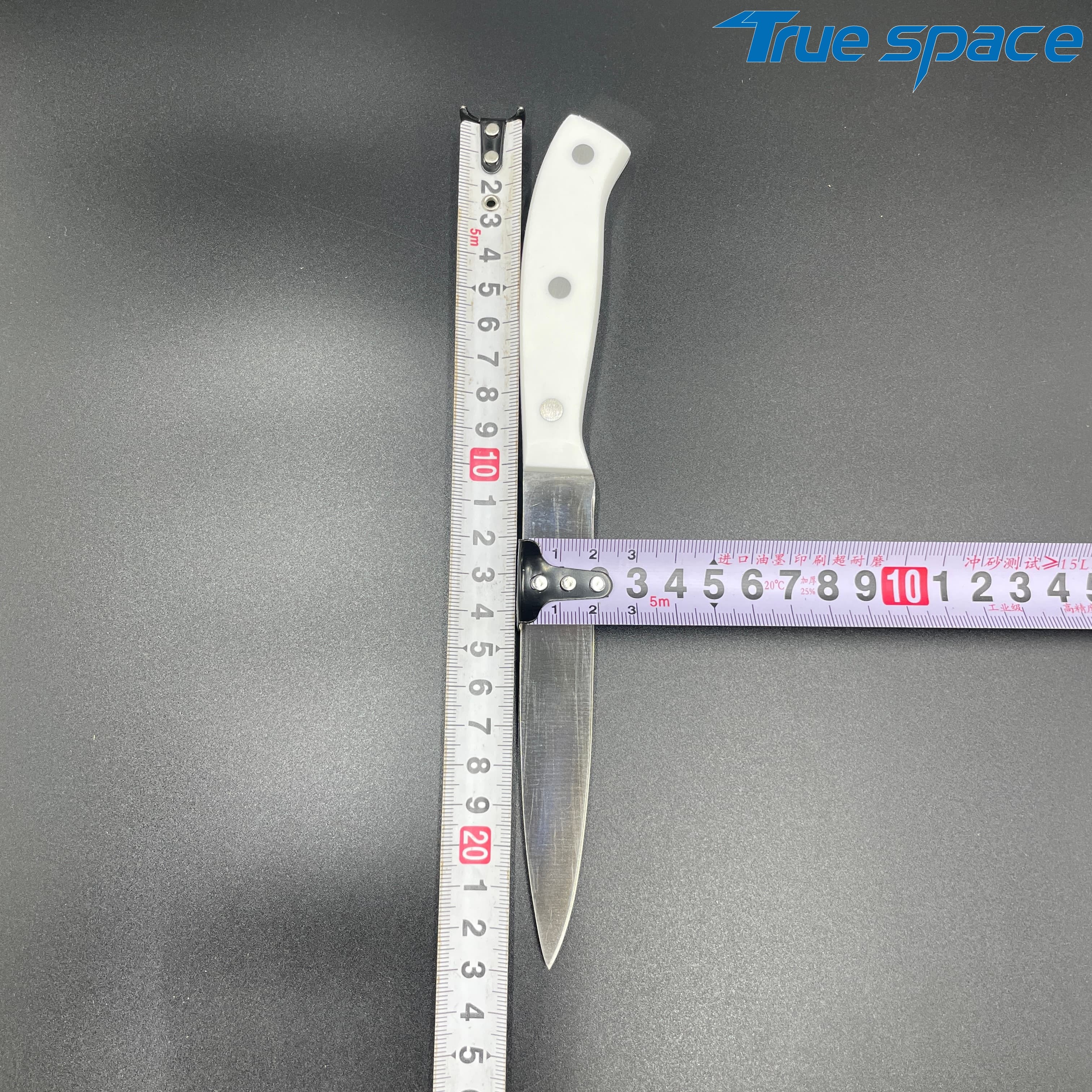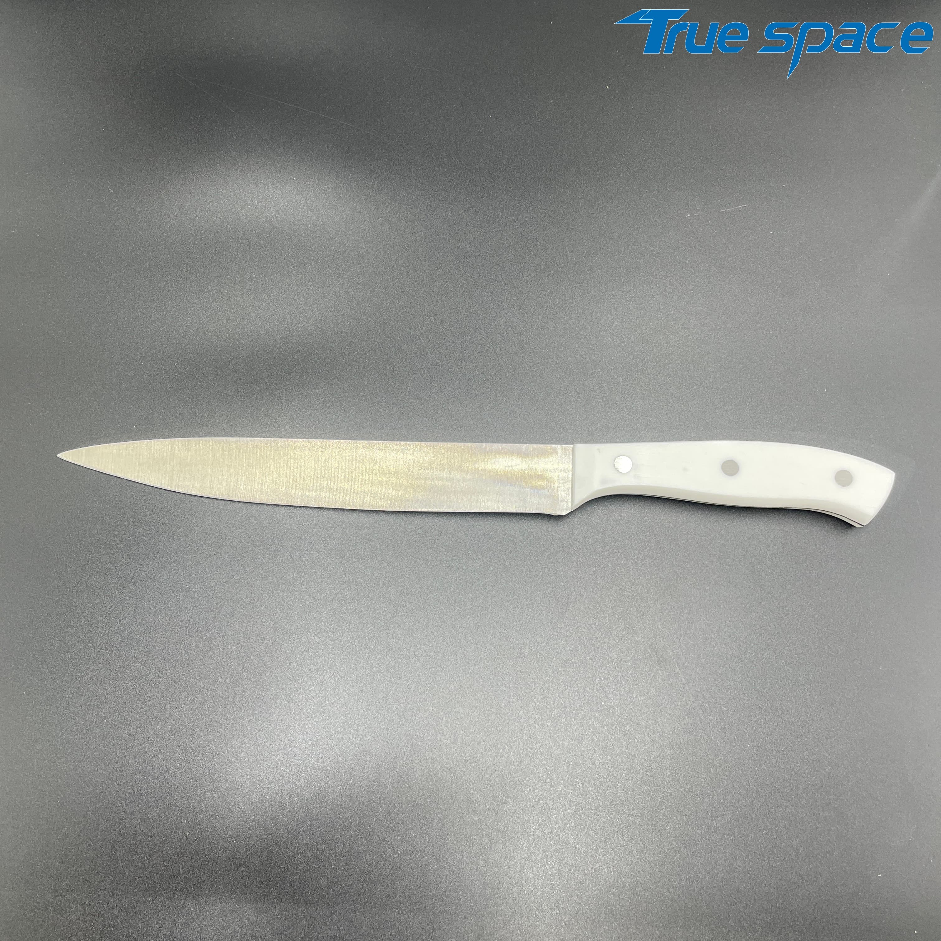 MeasurementFruit knife: 19.8 * 1.8 cmMulti-functional knife: 20 * 1.9 cmSlicing knife: 33 * 2.8 cmToothed knife: 33 * 2.7 cmChef’s knife: 32.2 * 4.2 cmMaterialBlade: Stainless steelHandle:PlasticWeight415.3gOptions/