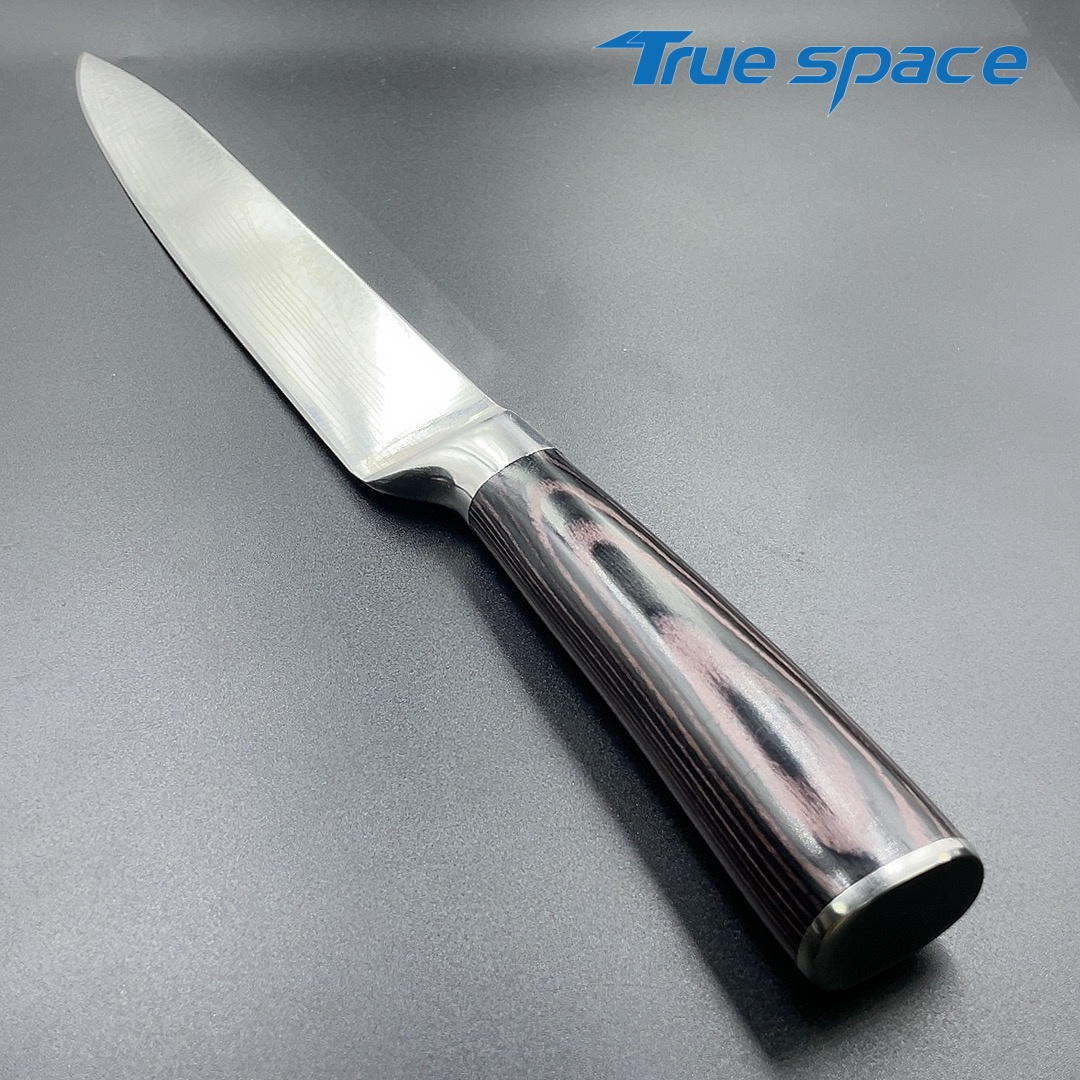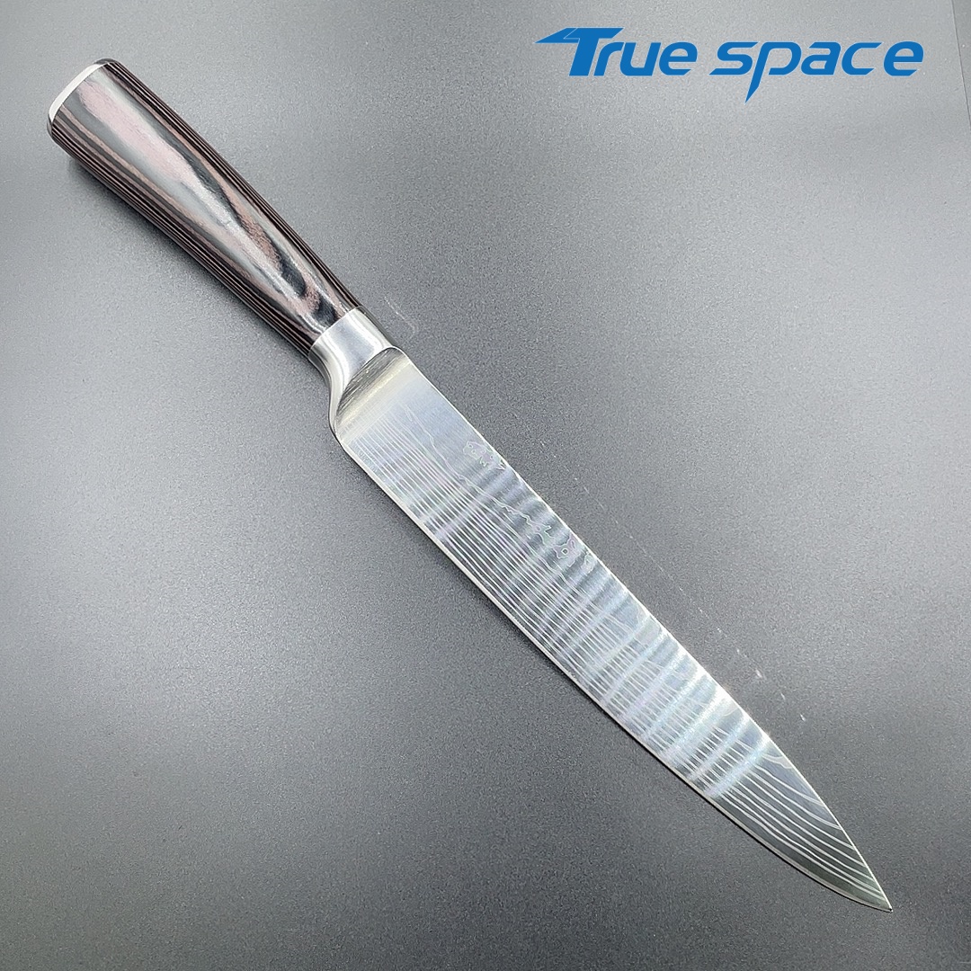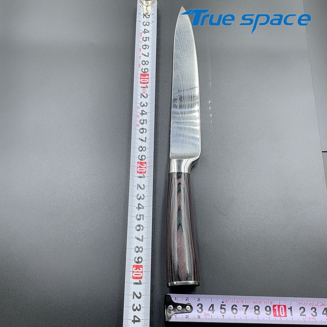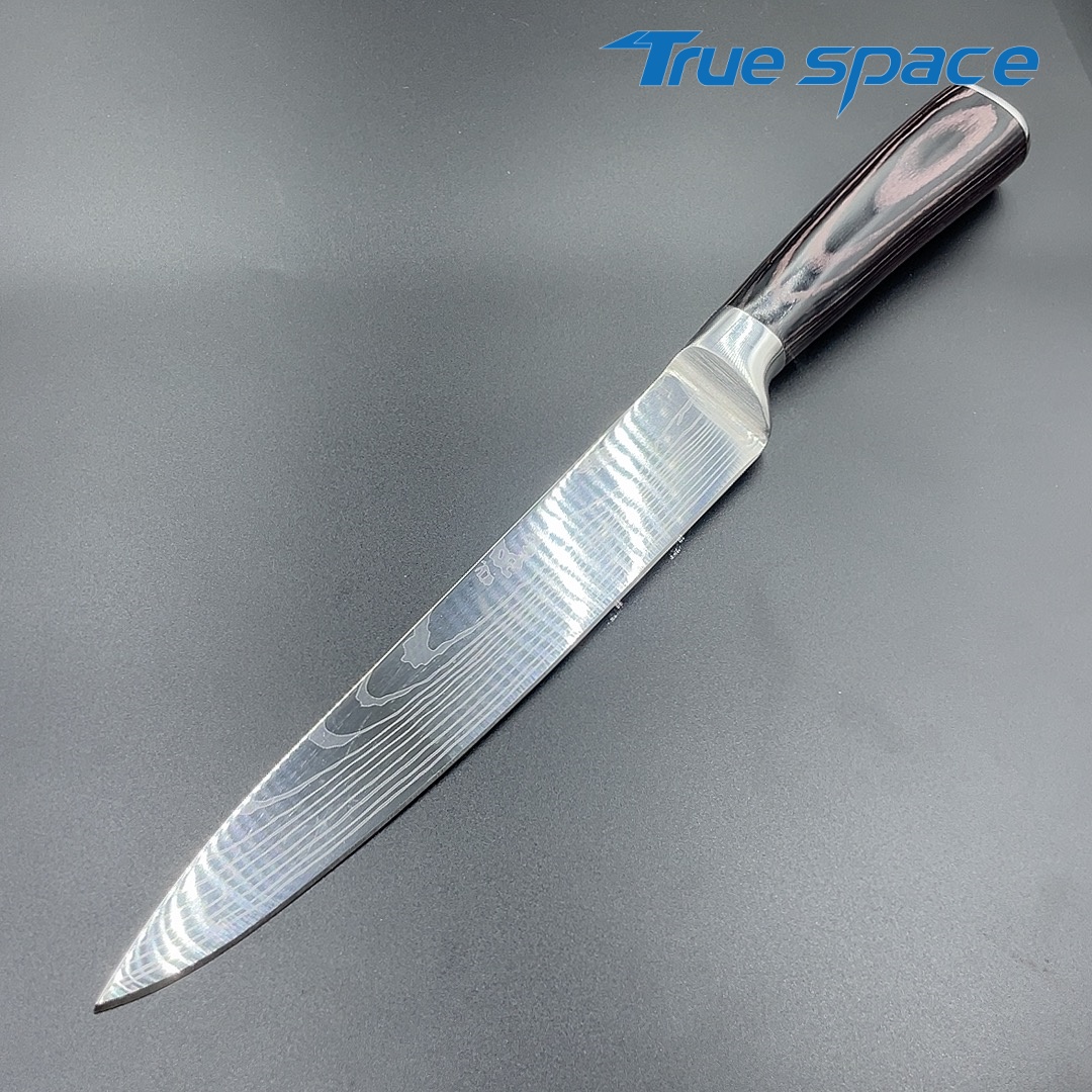MaterialDamascus SteelOptions1、Slicing knife2、Slicing knife with gift boxMeasurement31.7*3cmWeightKnife only: 154.5gWith gift box: 275.6g