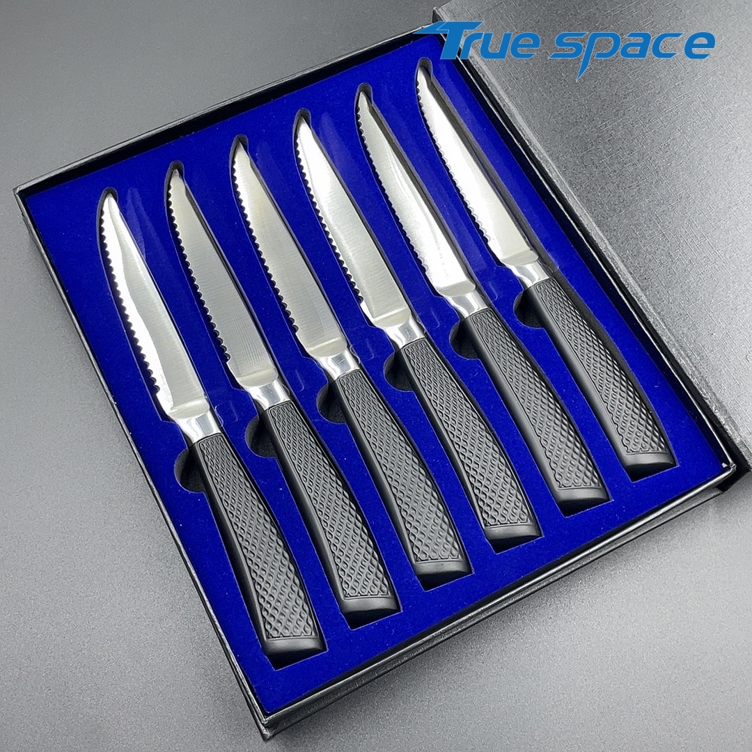 Options6-piece steak knife set with gift box(带礼盒的6件牛排刀)Measurement23.2*2.5cmWeight824.8g
